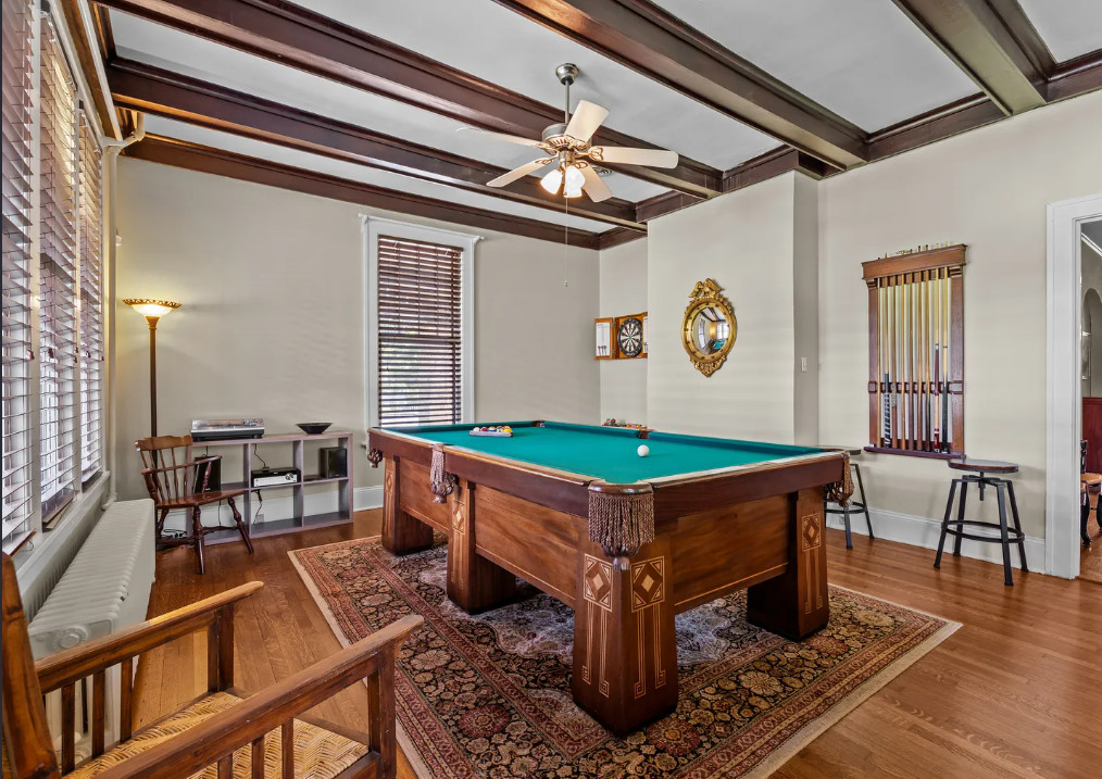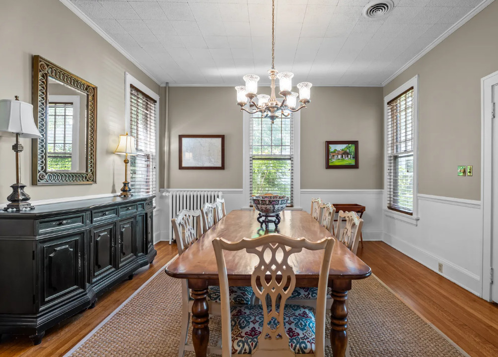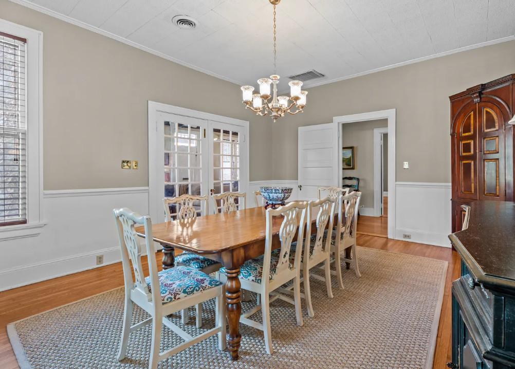 This is a pretty house! The pool and pool house were a nice surprise! This home is known as the Smith-Bishop House. It was built for William B. Smith, the President of Planters Bank and the developer of the West End Park. The house was built in 1918. It is located on .34 acre in Wilson, North Carolina. I was going to say they were asking a bit too much for Wilson, but the pool and the pool house makes it make sense. The house features a porte cochere, a covered front porch, wood floors, tall ceilings, exposed beams, wainscoting, french doors and an updated kitchen. The fenced in backyard has an in-ground pool and a detached pool house. Four bedrooms, two bathrooms and 2,272 square feet. $325,000
