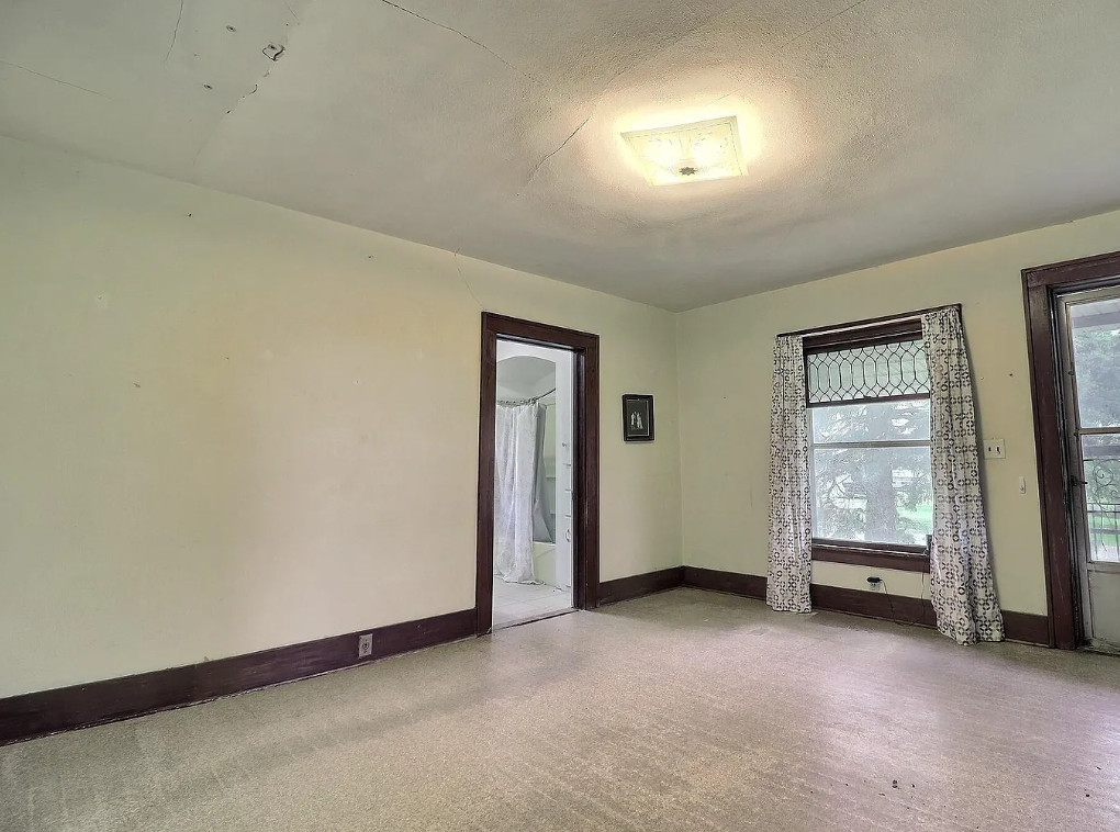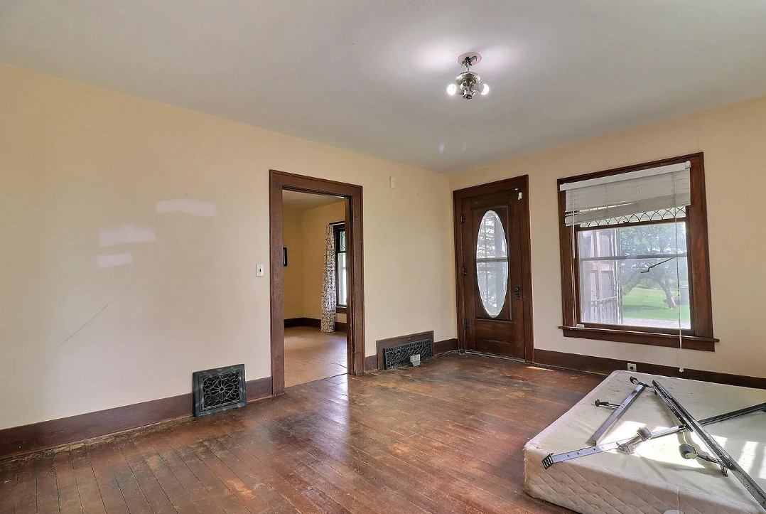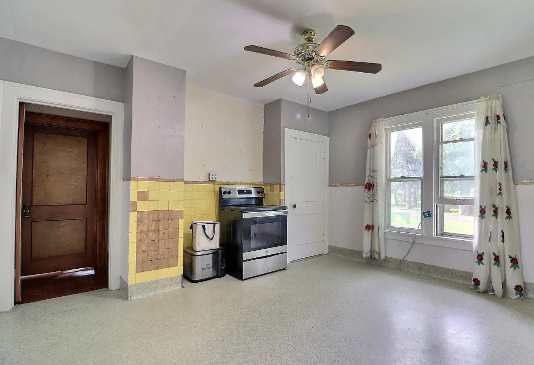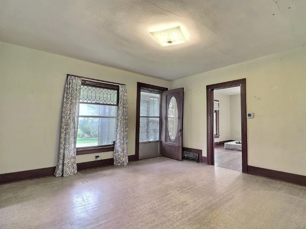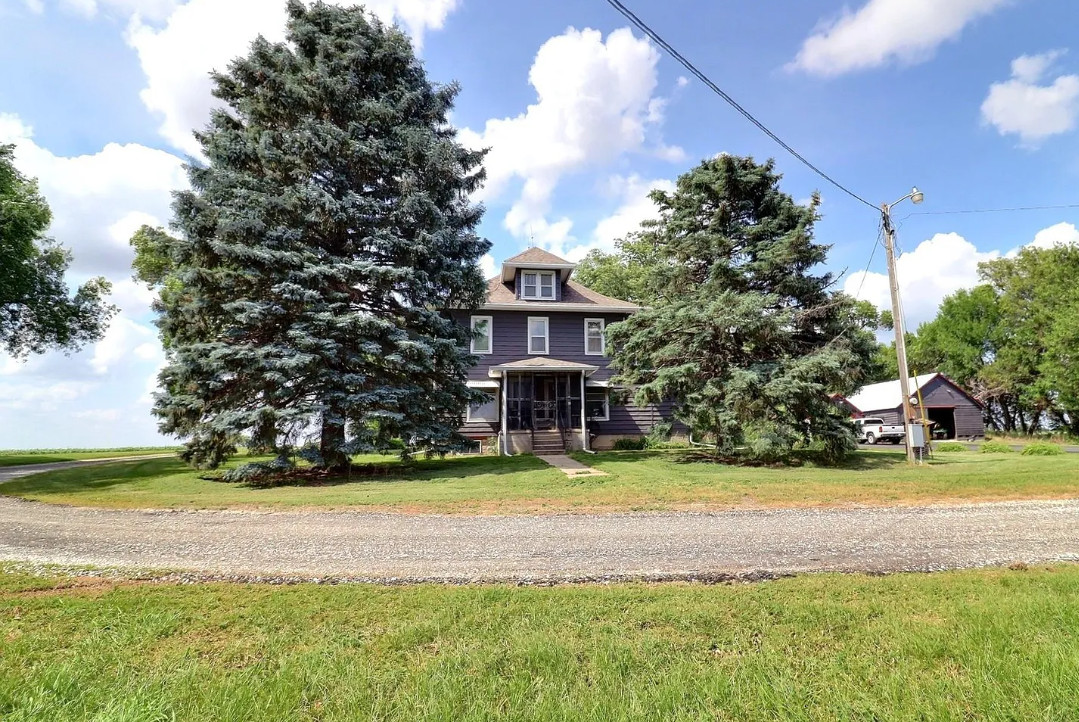 Pretty setting! Love all of the trees! The house was built in 1920. It is located on 5.76 acres in Dodge, Nebraska. The house features wood floors, baseboards, spacious kitchen space and a nice staircase. There are multiple outbuildings on the property, including a large garage and a large barn. Nice long driveway! Four bedrooms, one bathroom and 1,920 square feet. $325,000