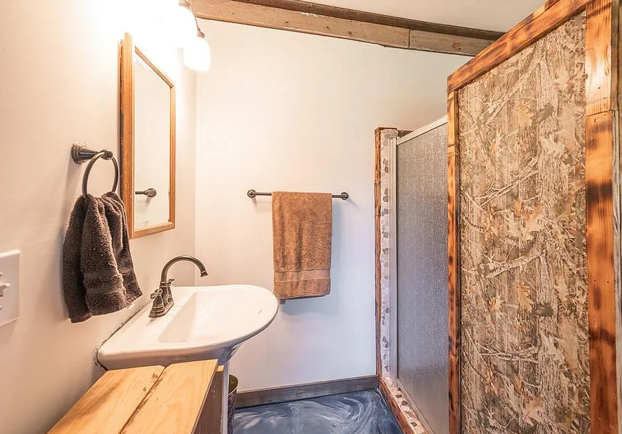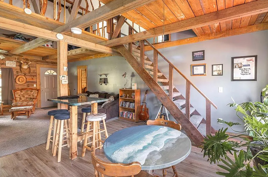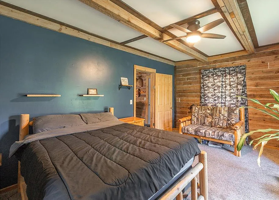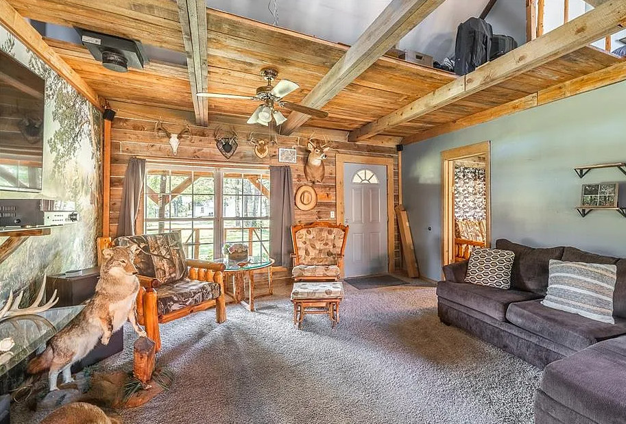 Tucked away in the heart of nature, this beautiful & peaceful 4-bed, 2-bath cabin offers the ultimate country escape on 2 serene acres surrounded by the Mark Twain National Forest. Whether you’re seeking a permanent residence, a weekend getaway, or a hunter’s dream retreat, this property delivers privacy, comfort, and natural beauty—all just 10 minutes from the East Gate of Fort Leonard Wood. As you approach the home, a covered front porch welcomes you. Step inside to discover an inviting open floorplan with warm wood tones, beamed ceilings & a rustic, lodge-like feel that makes you feel instantly at home. The spacious living room includes a dedicated platform for a portable wood-burning fireplace (currently stored in the shed), enhancing the cozy atmosphere during cooler months. The main level features 2 bedrooms, while the upstairs loft offers two additional non-conforming bedrooms—ideal for extra sleeping space or a home office. Step out back to your own private oasis. The backyard is fenced & designed for enjoyment, featuring a deck, an above-ground pool & plenty of space to relax, entertain. There’s even a shed for extra storage & keeping outdoor equipment. Surrounded by thousands of acres of public land, this location is ideal for outdoor enthusiasts, with endless opportunities for hunting or hiking. If you’re searching for a home that offers peace, privacy & the charm of rustic living—yet is still close to town conveniences—this one-of-a-kind cabin checks all the boxes