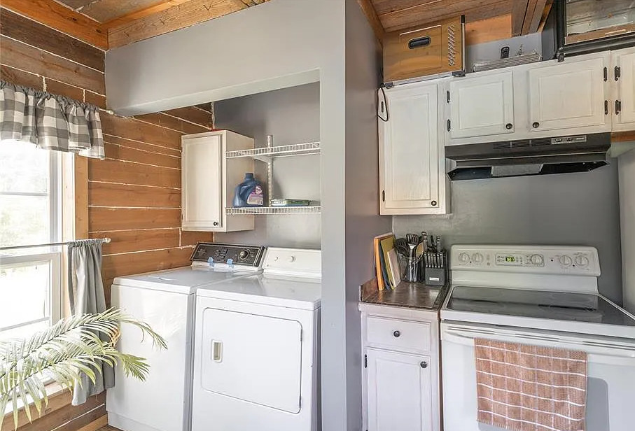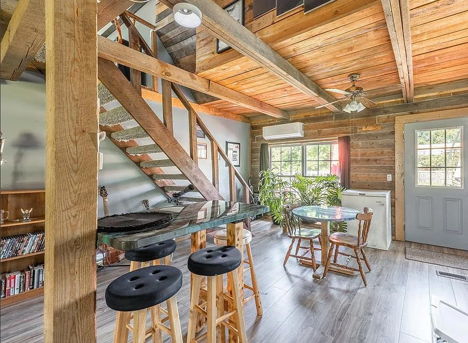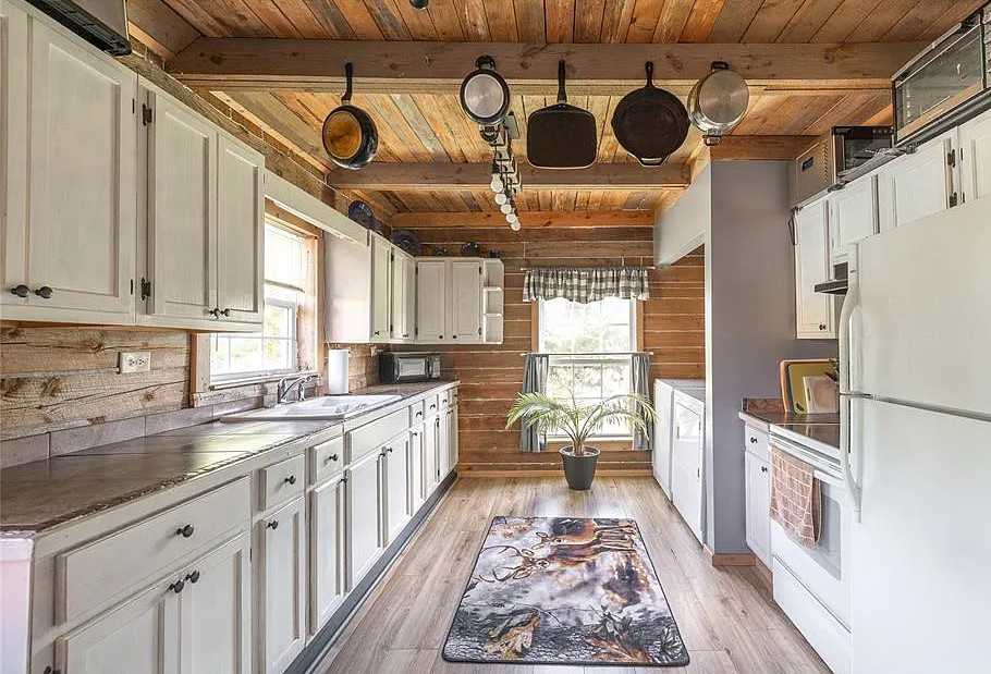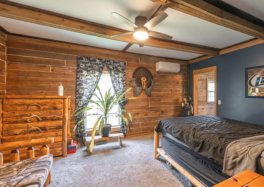 This log cabin has a unique interior! The cabin was built in 1940. It is located on 2.1 acres in Edgar Springs, Missouri. The cabin features a covered front porch, exposed beams, wood ceilings, loft area and an updated kitchen. There is a fenced in backyard with an above ground pool and a large deck. The property is surrounded by the Mark Twain National Forest. Four bedrooms, two bathrooms and 1,817 square feet. $199,000