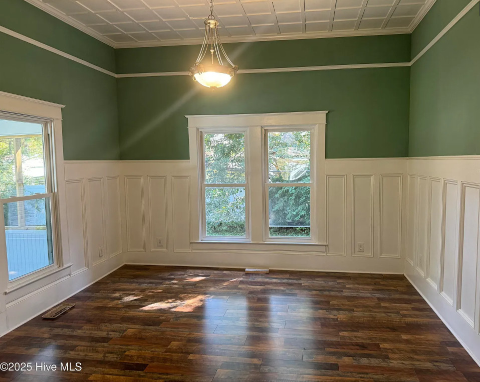 Total porch goals with this house! Interior has some nice details! The house was built in 1900. It is located on .50 acre in Whitakers, North Carolina. The house features a large wrap around porch, wainscoting, wide baseboards, bead board, tall ceilings, pressed tin, picture rails and original mantels. I wish they had more interior pictures and pictures of the backyard. Three bedrooms, two bathrooms and 2,400 square feet. $245,000