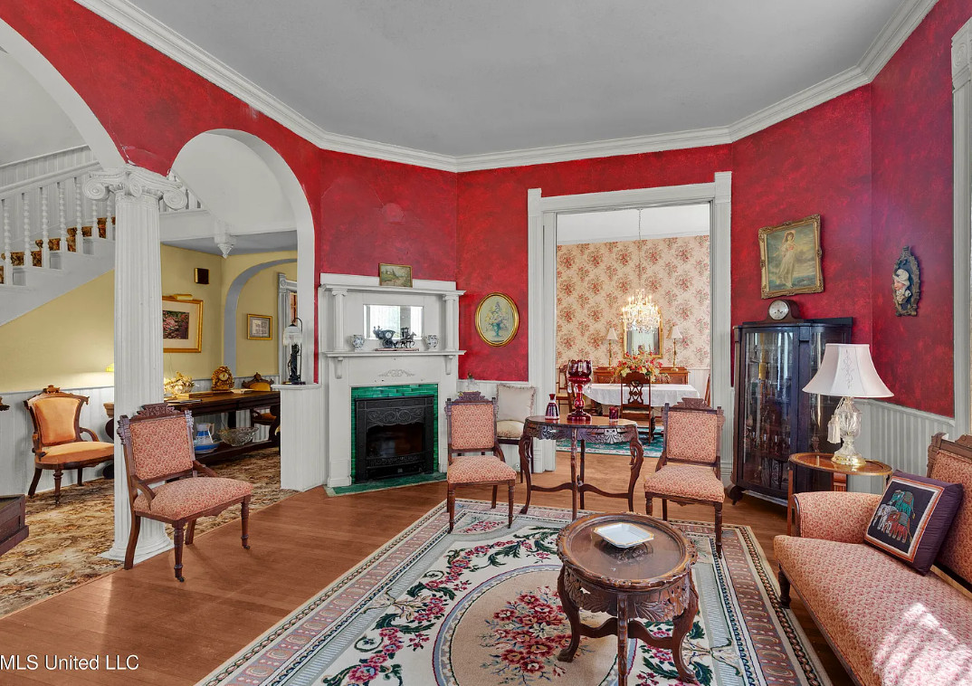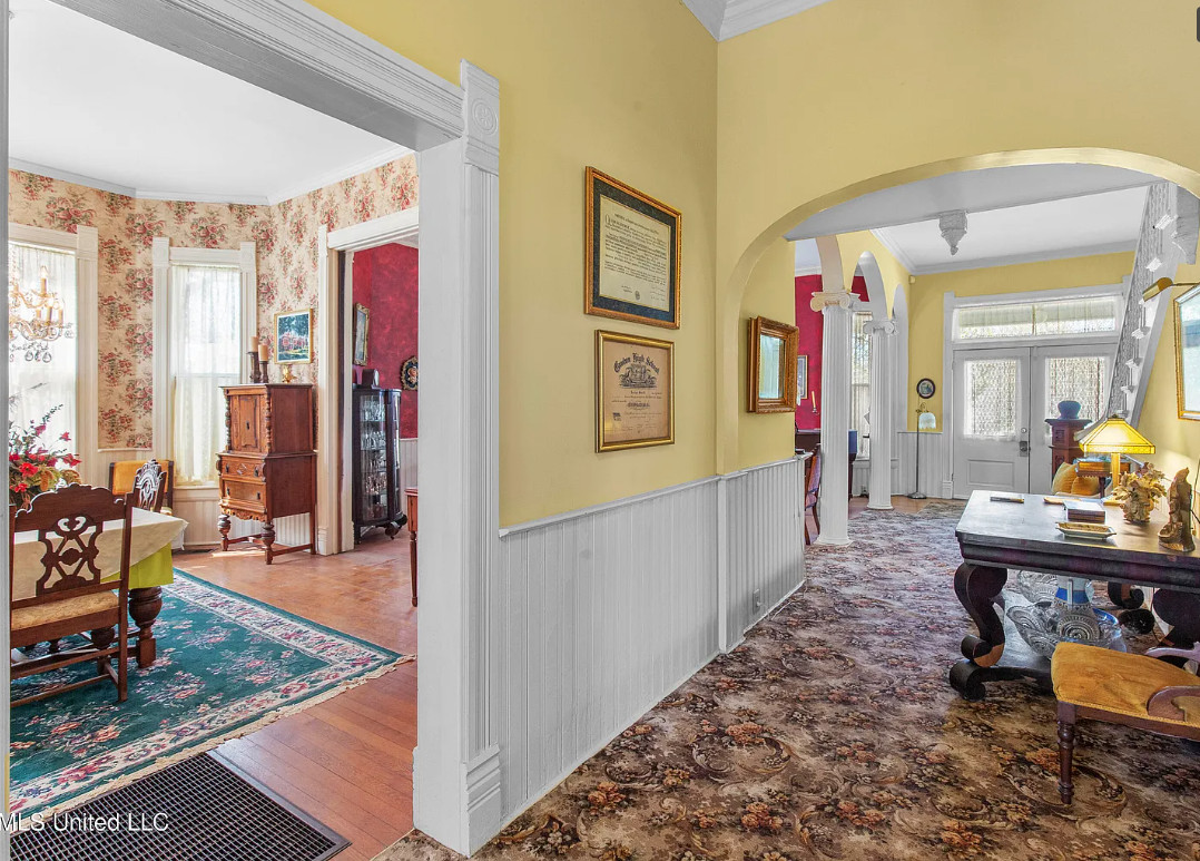 Pretty interior! The Smith-Riddell House, Circa 1899 in Mississippi. $250,000