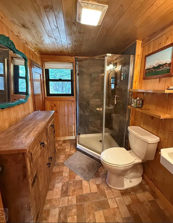 Stove is beautiful! Nice cabin in Colorado. Circa 1905. $389,000