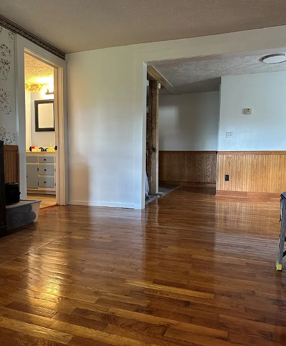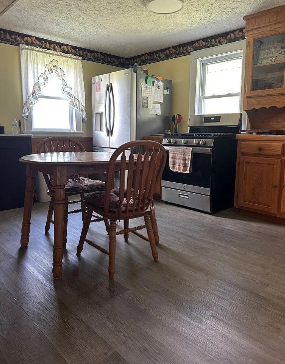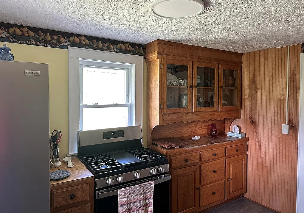 This is such a pretty setting! Even though it’s in Virginia, it’s only ten minutes from downtown Mt. Airy, North Carolina. Such a pretty area! The house was built in 1944. It is located on 1.28 acres in Claudville, Virginia. The house features a covered front porch, wood floors, wainscoting and baseboards. The home has been updated and has a new metal roof, new HVAC, on demand hot water and new plumbing. There is a barn on the property. Three bedrooms, one bathroom and 1,210 square feet. $172,500