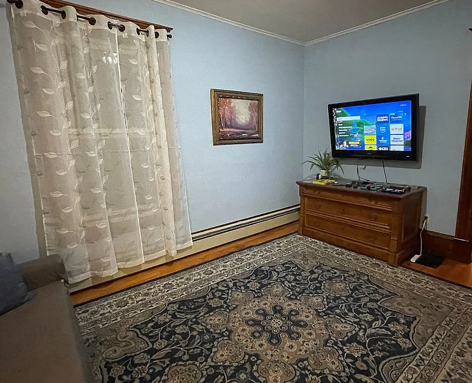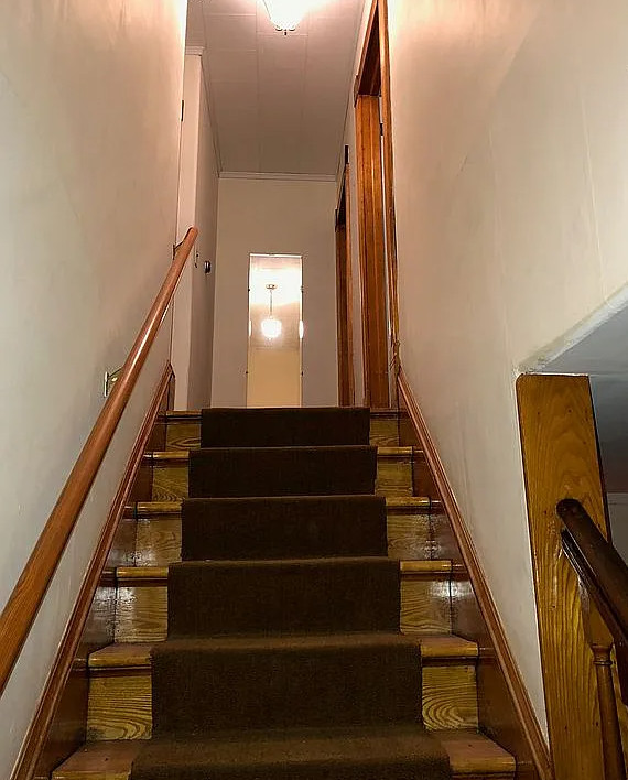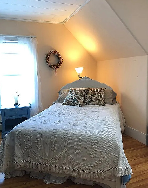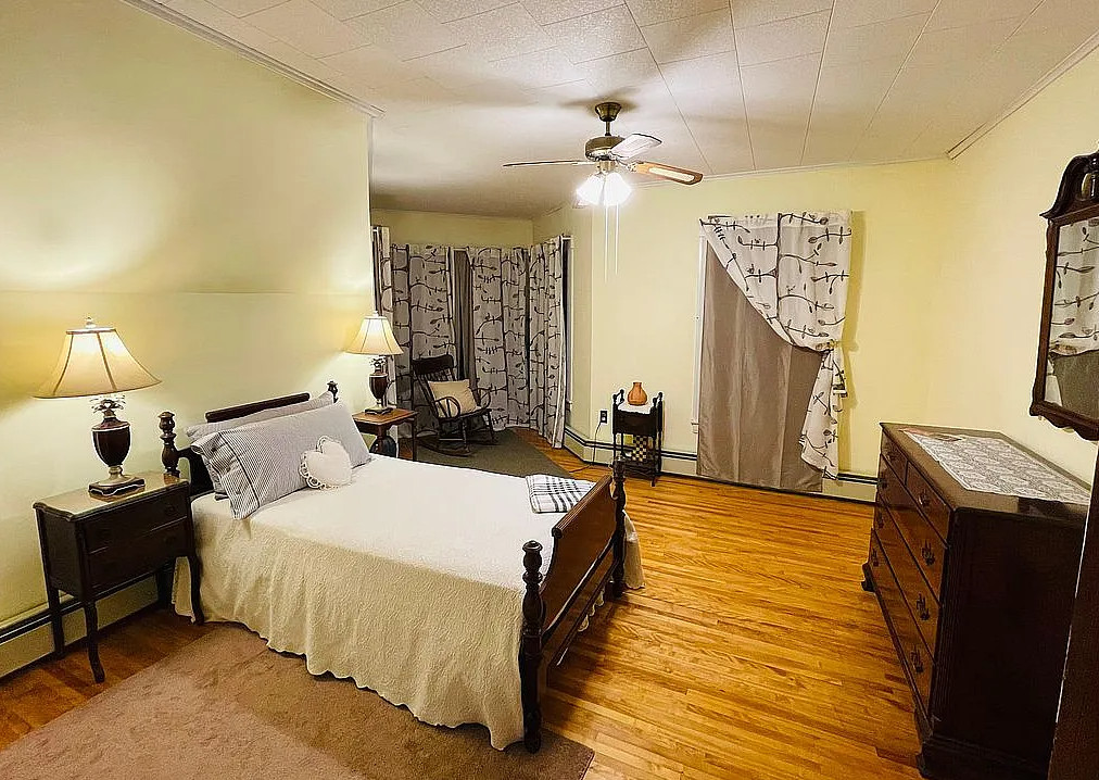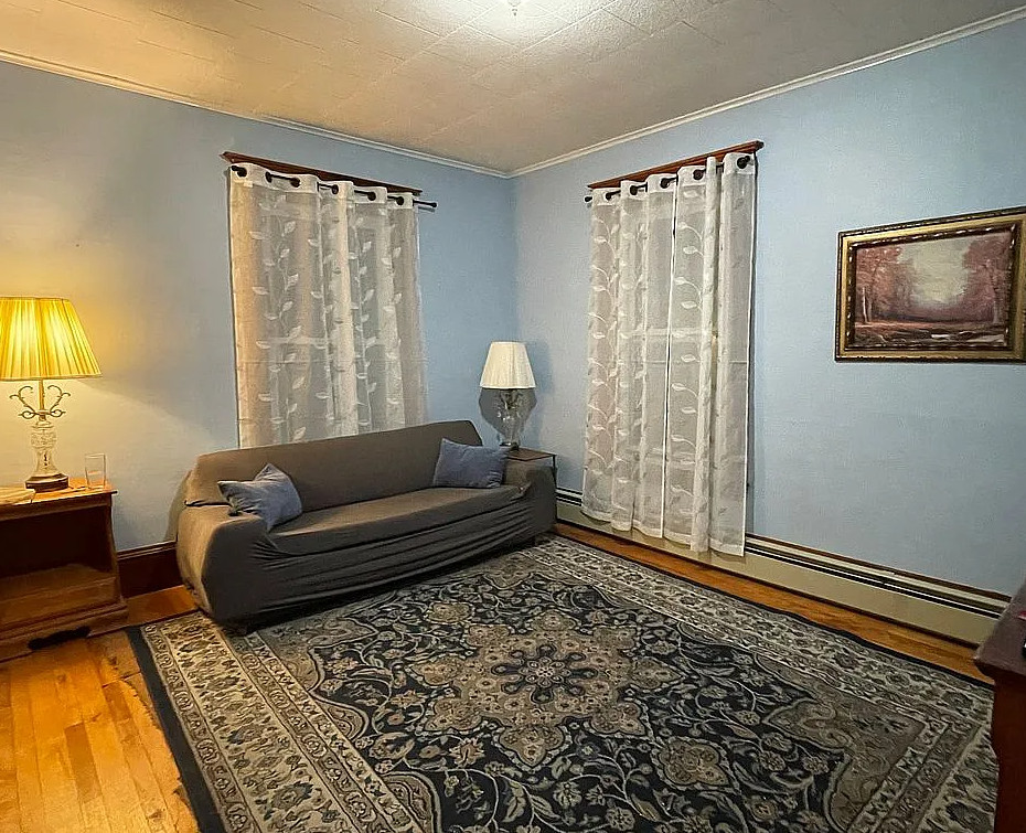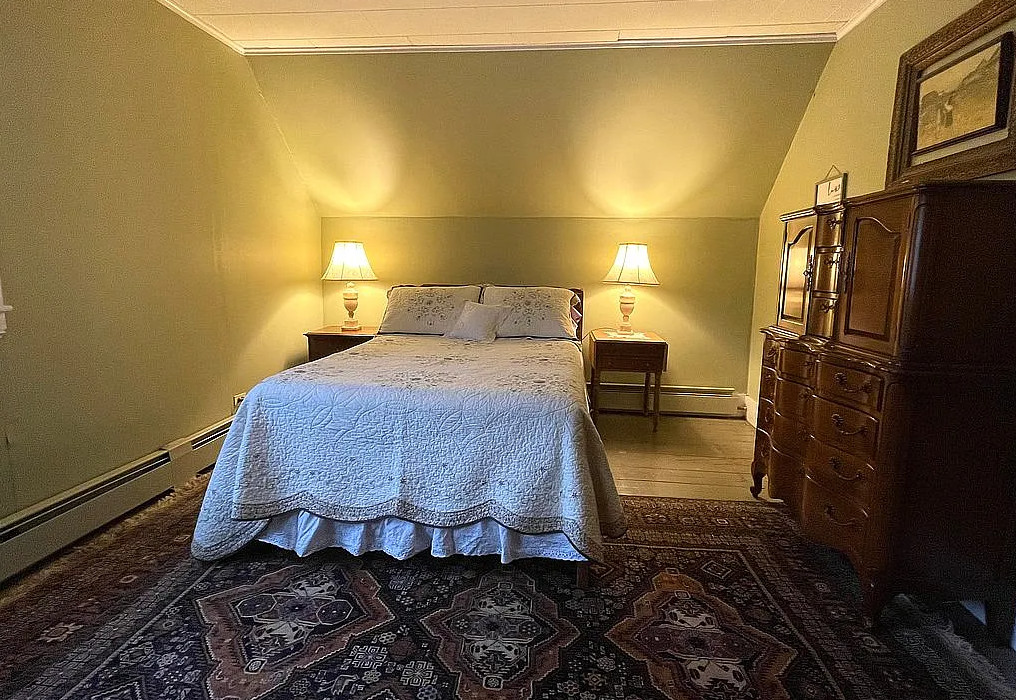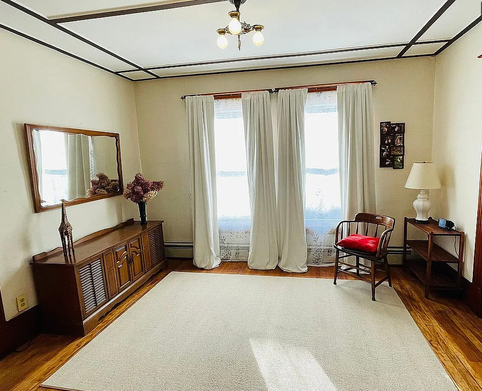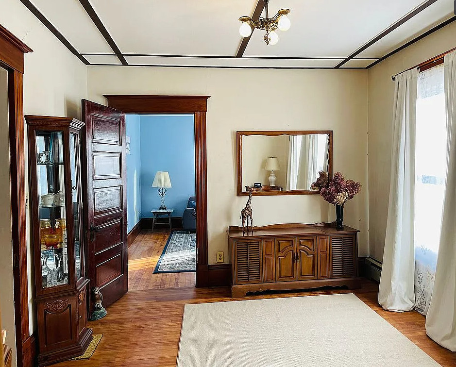 This is a sweet house! Love the pressed tin ceilings! Nice basement with a pool table. The house was built in 1895. It is located in Woodsville, New Hampshire. The house features a covered front porch, wood floors, pressed tin ceilings, crown moulding, sunroom, stained glass and vintage light fixture. There is a large basement with work table, pool table and room for storage. The yard has perennial gardens, fruit trees and a gazebo. Three bedrooms, two bathrooms and 2,294 square feet. $259,900
