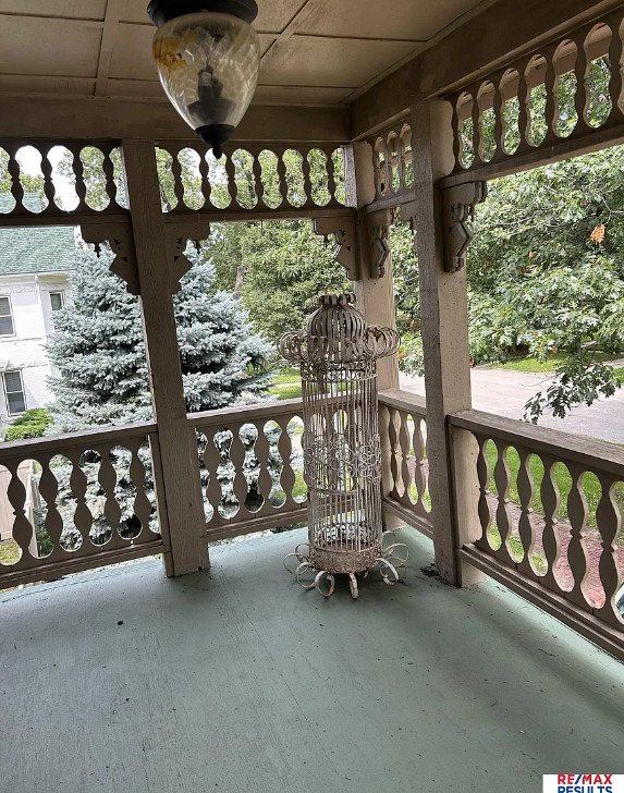 This house is really pretty! A lot of nice details! The house was built in 1890. It is located on .34 acre in Auburn, Nebraska. The house features multiple porches, some original wood floors, baseboards, updated kitchen, original millwork, claw foot tub and solid wood doors with original hardware. There is a brick u-shaped driveway. Five bedrooms, two bathrooms and 3,040 square feet. $275,000
