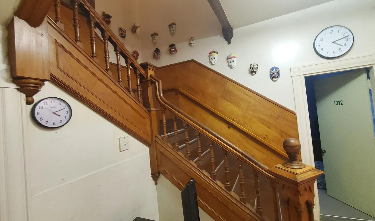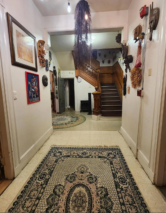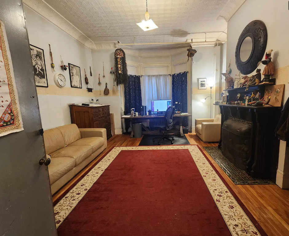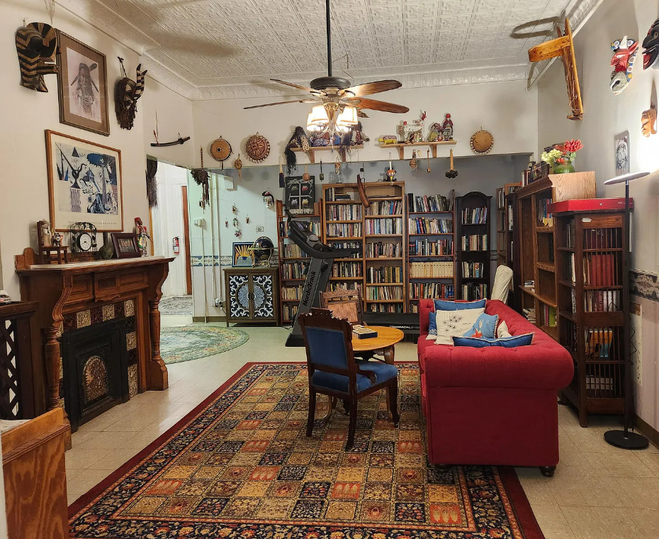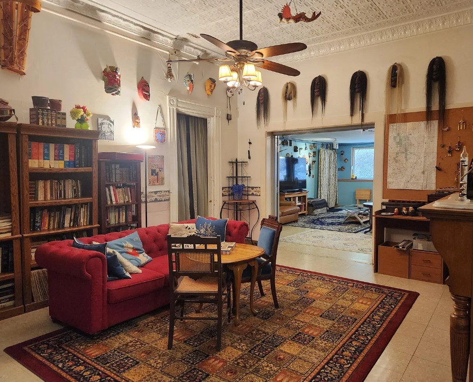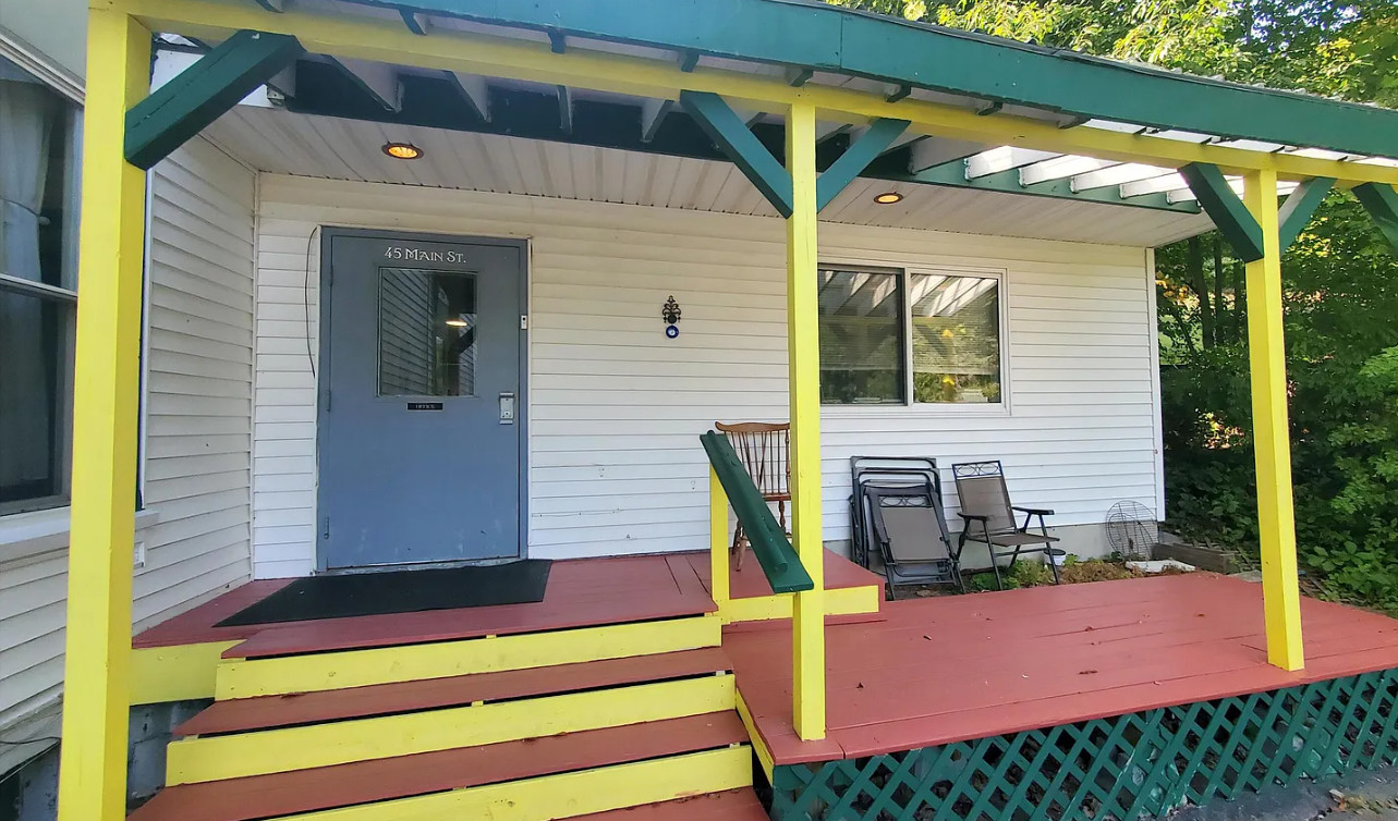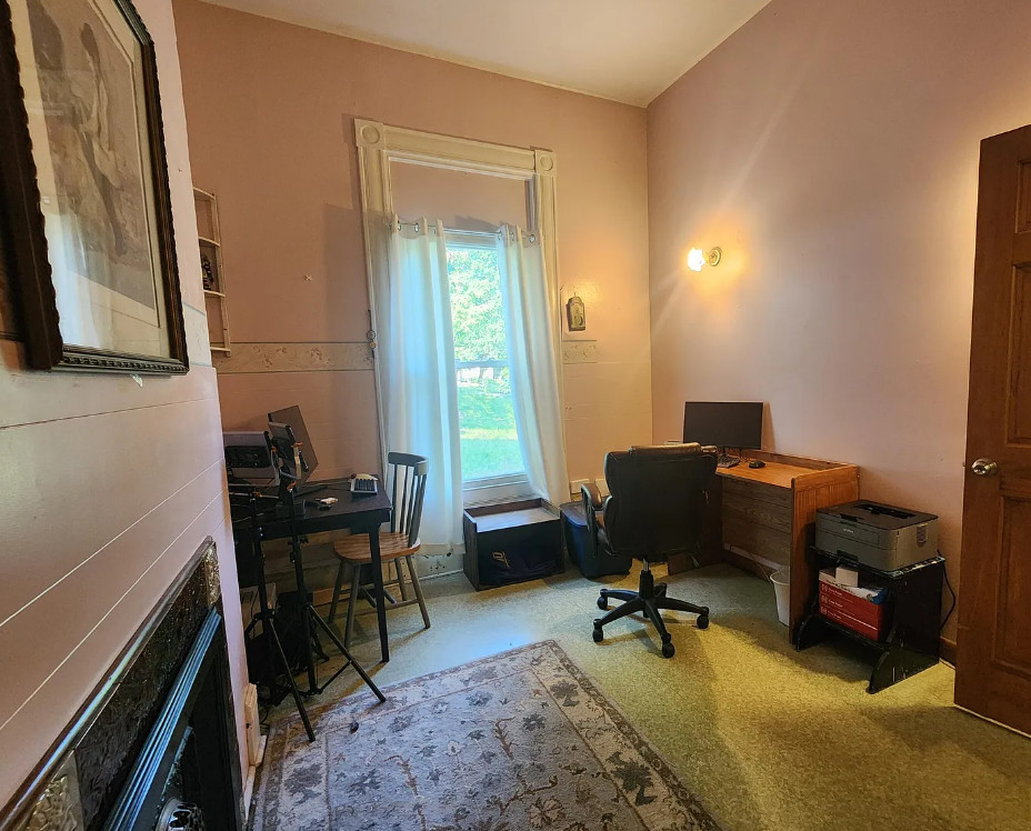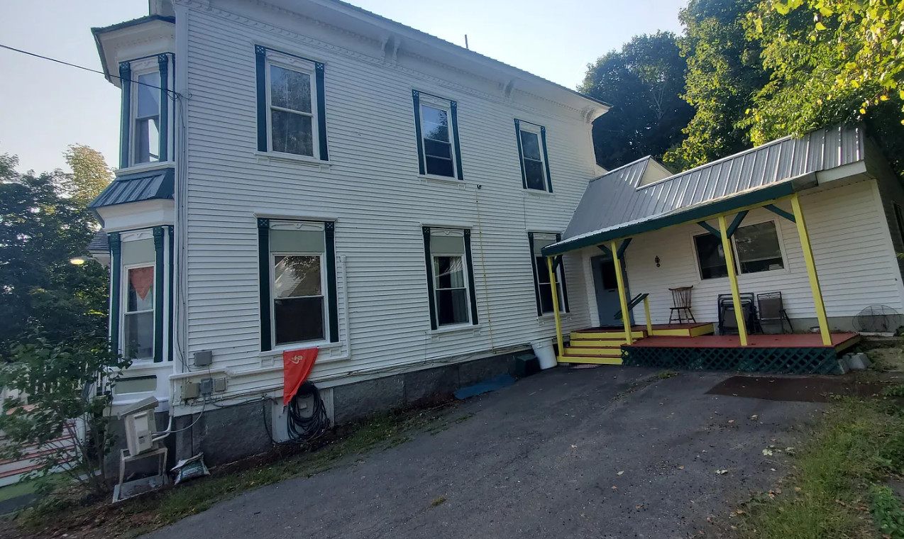This is a big house with 14 bedrooms and eight bathrooms! It has a bit of a Talk Amongst Yourselves feel to it! The house was built in 1890. It is located on .94 acre in Dexter, Maine. The house features a covered front porch, double front doors, stained glass, wood floors and a nice staircase. There is a large basement. It definitely needs work and some undoing of past renovations, but this has potential. Fourteen bedrooms, eight bathrooms and 8,660 square feet. $340,000