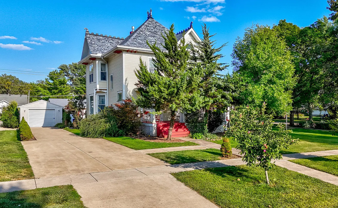 Walk into your very own move-in ready Victorian 3-bedroom 2-bathroom home with a full wrap-around porch! This is one you don’t want to miss! Many original features including stained-glass windows, original woodwork and crown moulding, built-in cabinets, and original hardwood flooring. This gem features a 3-car garage, landscaping with a beautiful pond, a hangout shed, and many updates including the roof in 2024, downstairs furnace in 2022, new appliances in 2022 & 2024, new living room carpet in 2022, plus so much more! The master bedroom and bath on the 2nd floor showcase a balcony with a winding staircase updated in 2016. Very motivated seller! Come see all this home has to offer TODAY!