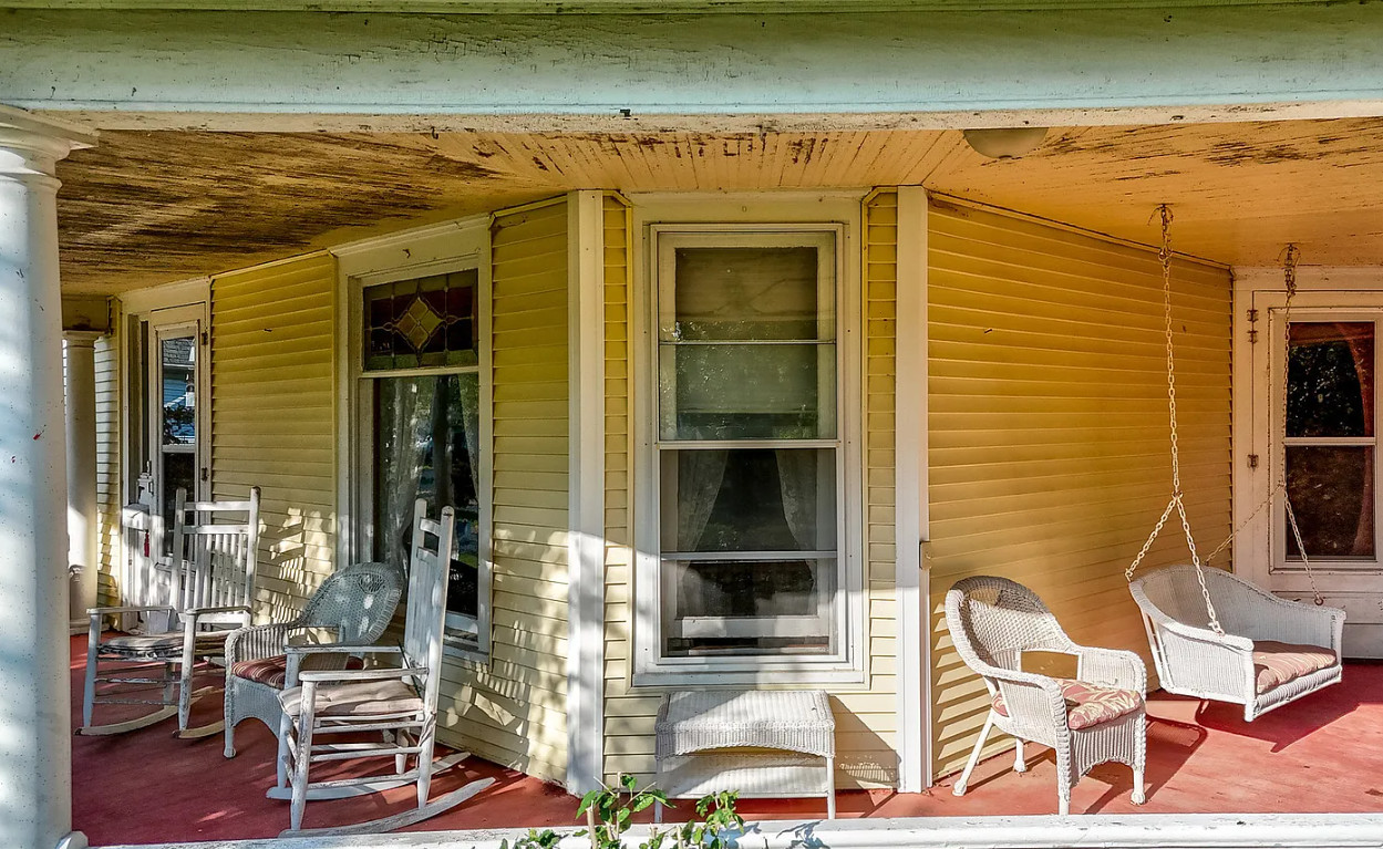 This house has a beautiful staircase and pretty stained glass windows! The house was built in 1912. it is located on .4 acre in Wenona, Illinois. The house features a wrap around front porch, wood floors, baseboards, built-ins, crown moulding, beautiful staircase and stained glass windows. There is a three car garage on the property and a koi pond. Three bedrooms, two bathrooms and 2,000 square feet. $228,000