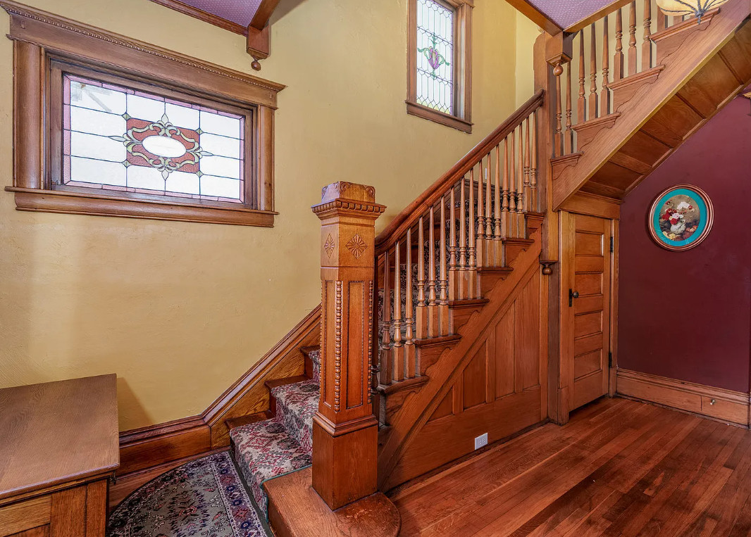 Beautiful staircase and stained glass! Circa 1912 in Illinois. $228,000