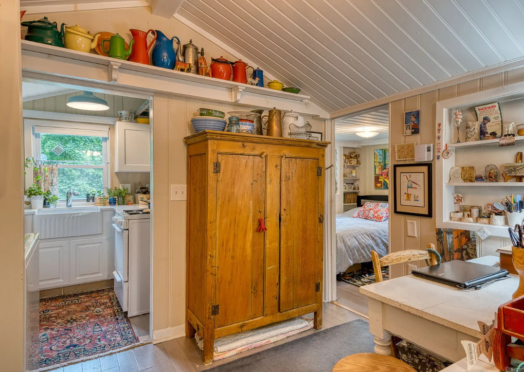 Welcome to your dream cottage retreat! This wonderful and unique property features not just one but two charming cottages nestled in a picturesque setting. With many recent updates, from cosmetics to systems (including an energy audit and added insulation at the main cottage), you get modern comfort while maintaining rustic charm. The main cottage (462sq’) is all on one level, bright and inviting with its vaulted ceiling, stone fireplace, and remodeled bath and kitchen with vintage-style appliances. The second cottage (320sq’) is currently a 3-season dwelling with the potential to make it year-round. The interior is finished in a Scandinavian style, with pine paneling and its wonderful scent, lots of light and a cozy ambiance. On the main level is an open layout with the makings of a kitchen nook, and a full bath with laundry hookup. A spiral staircase leads to a loft with two additional rooms; perfect for overnight guests or a designated home office space. Or, have you always dreamed of having your own private studio for pottery, painting, music or other exciting ventures? Maybe this is the perfect fit! Also, with owner occupancy in the main cottage, recent zoning changes even leave a potential for short-term rental (think Airbnb income)! The serene yard has beautiful stone walls and plenty of space for summertime fun, with a large pond complete with a soothing fountain. It’s a backyard birder’s dream. Don’t miss this opportunity to own a slice of paradise!