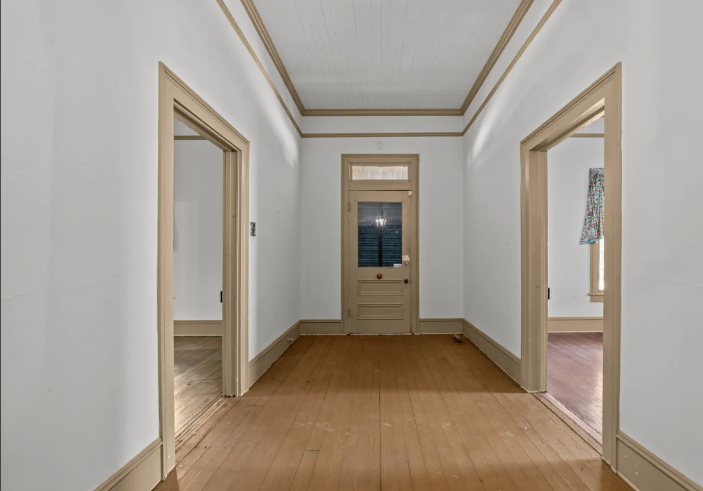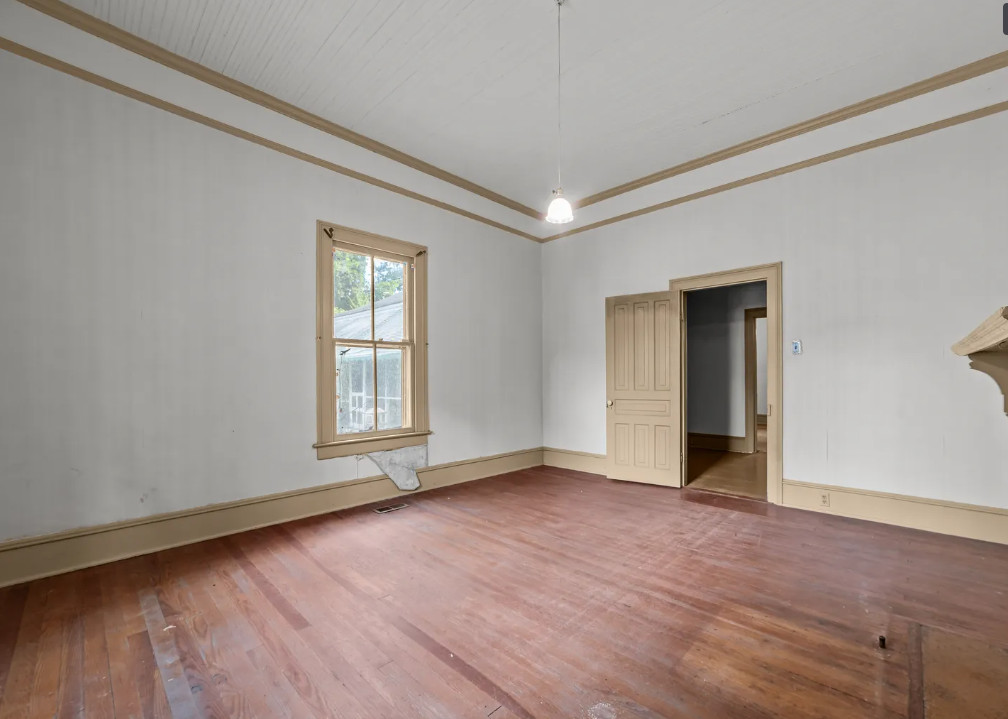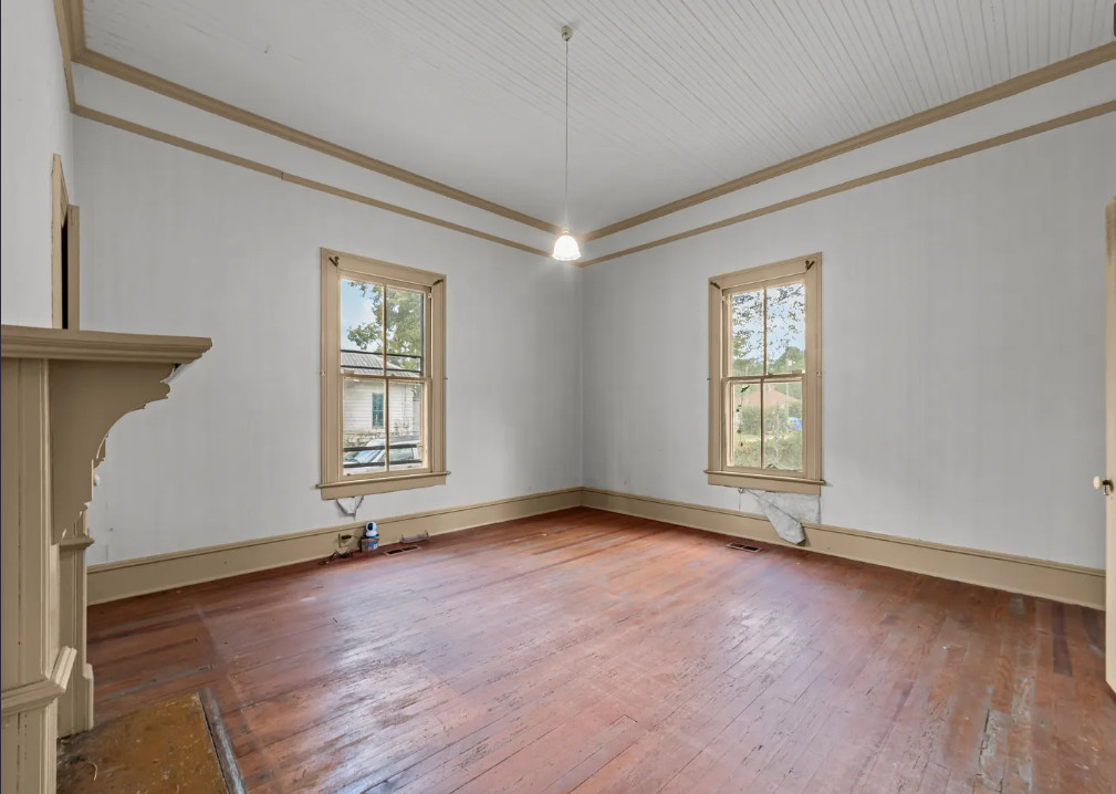 This fixer upper alert has tall ceilings and nice details! This town has been undergoing a lot of revitalization which is always a good sign. The house was built in 1900. It is located on .34 acre in Tarboro, North Carolina. The house features a covered front porch, original wood floors, tall ceilings, picture rails, french doors, wide baseboards, claw foot tub, chair rails, crown moulding, wainscoting and a spacious kitchen. There is a spacious backyard and a screened in porch. Two bedrooms, one bathroom and 1,760 square feet. $69,900