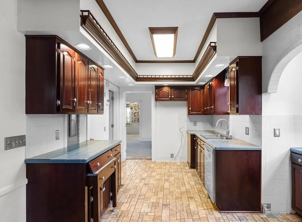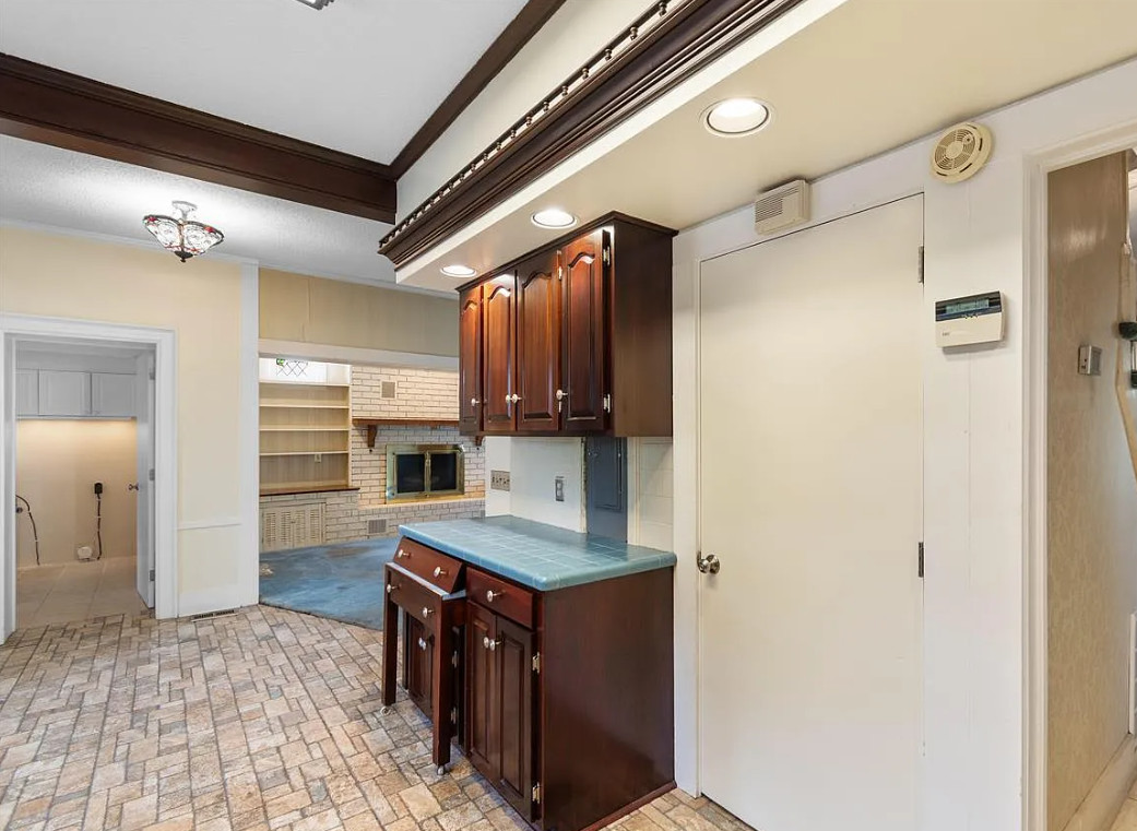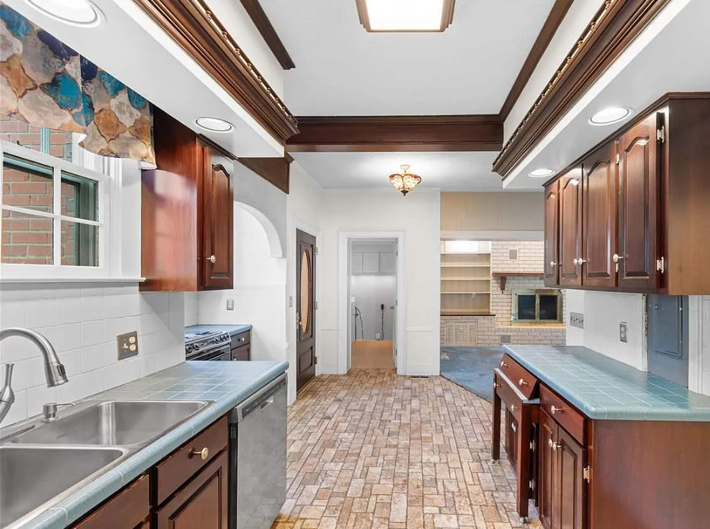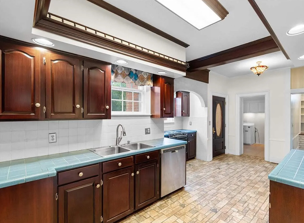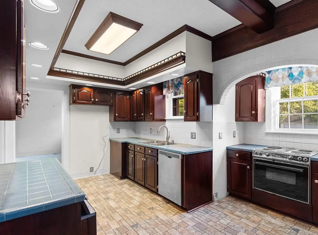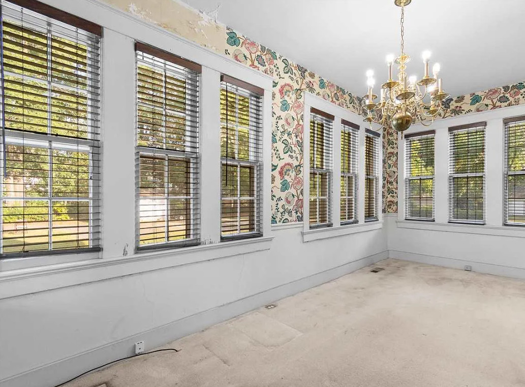This house looks like a diamond in the rough to me! It sure could use some undoing of the 1980’s. The house was built in 1928. It is located on .66 acre in Florence, South Carolina. The house features double front porches, crown moulding, some wood floors, baseboards, spacious kitchen, wainsocting, chair rails, brick fireplace and built-in bookshelves. There is a detached three car garage on the property, as well as a small building. Three bedrooms, three bathrooms and 2,349 square feet. $245,000