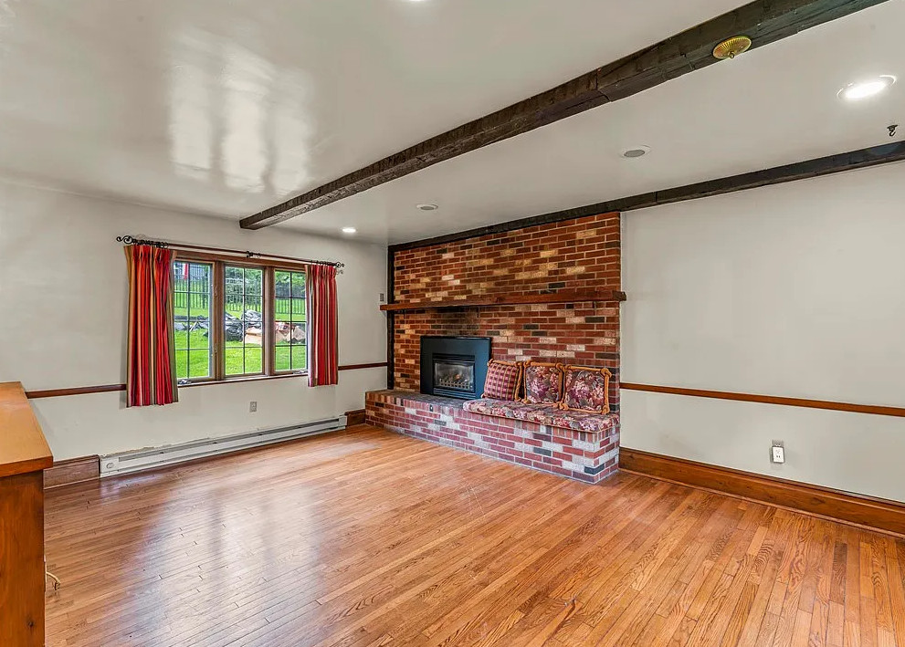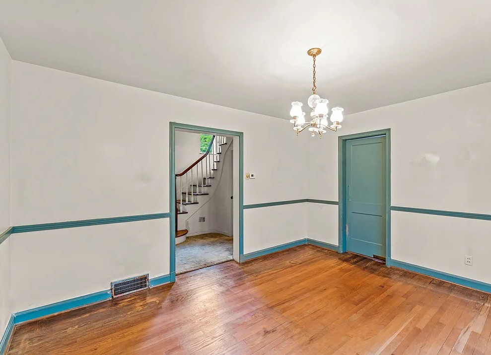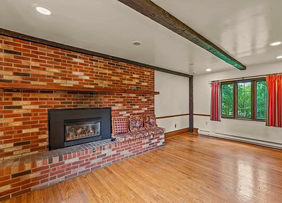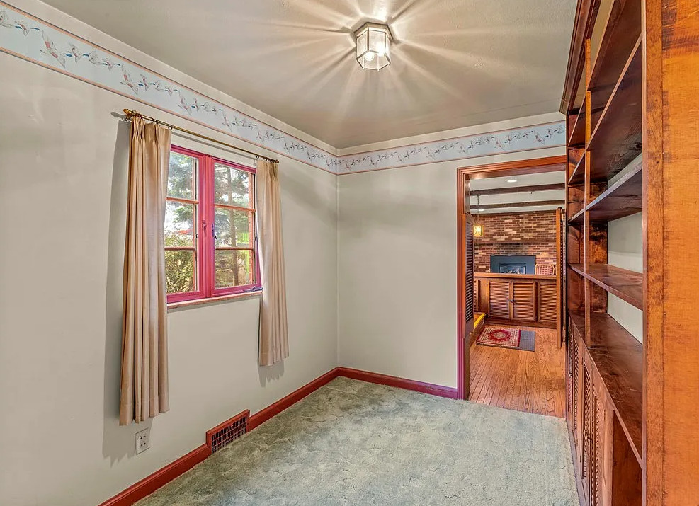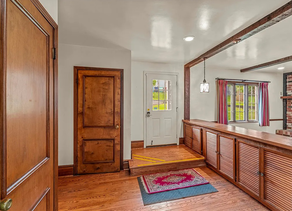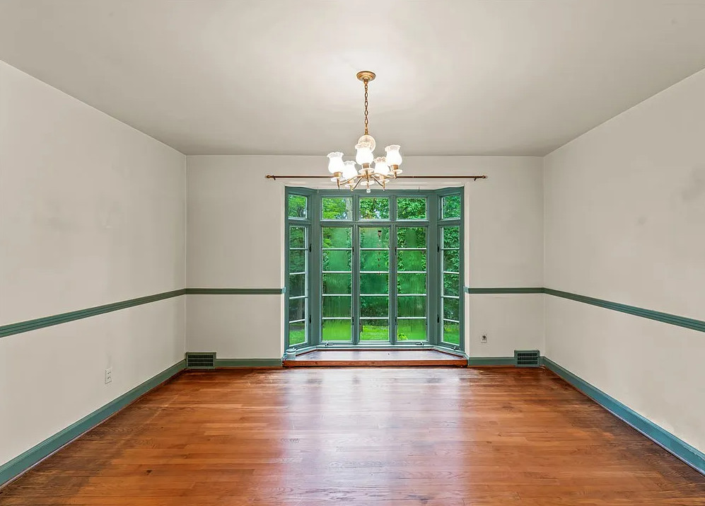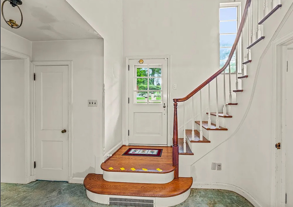 This house has pretty details inside! The house was built in 1941. It is located on .30 acre in Washington, Pennsylvania. The house features a nice staircase, wood floors, chair rails, bay window, wide baseboards, built-in bookshelves, large brick fireplace and an attached greenhouse. This is a big house! Four bedrooms, four bathrooms and 2,727 square feet. $334,900