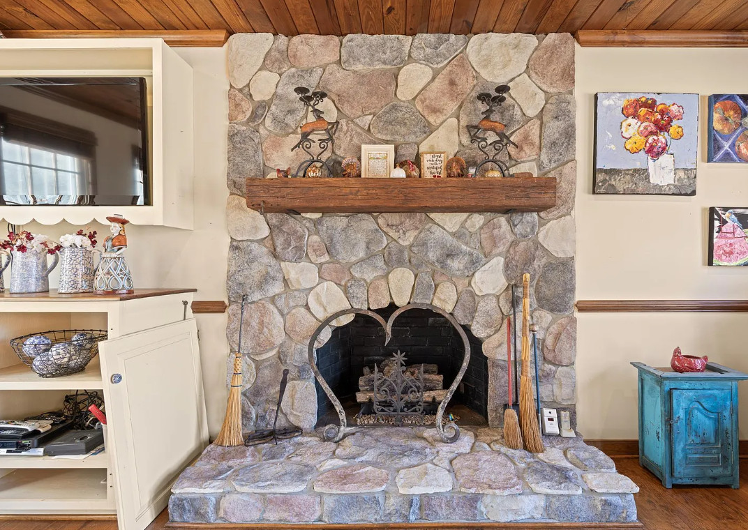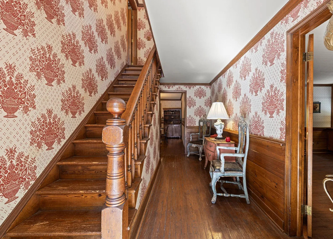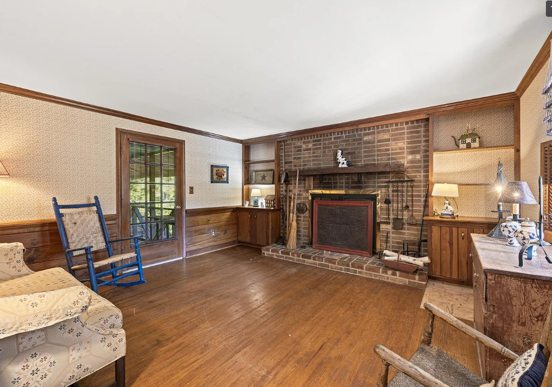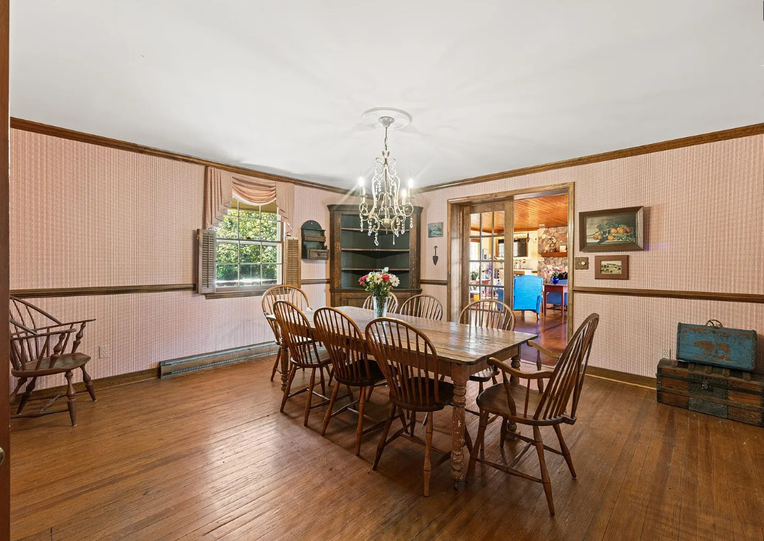 This house has such a pretty setting! Love the scenery, the pool and those porches! The house was built in 1900. It is located on 6.39 acres in Esmont, Virginia. The house features a covered front porch, screened in double side porches, original wood floors, wainscoting, crown moulding, large brick fireplace, chair rails, baseboards, stone fireplace and a sunroom. There is a large in-ground pool, a detached storage shed, attic and an old barn. Close to orchards and wineries. Three bedrooms, two bathrooms and 2,724 square feet. $675,000