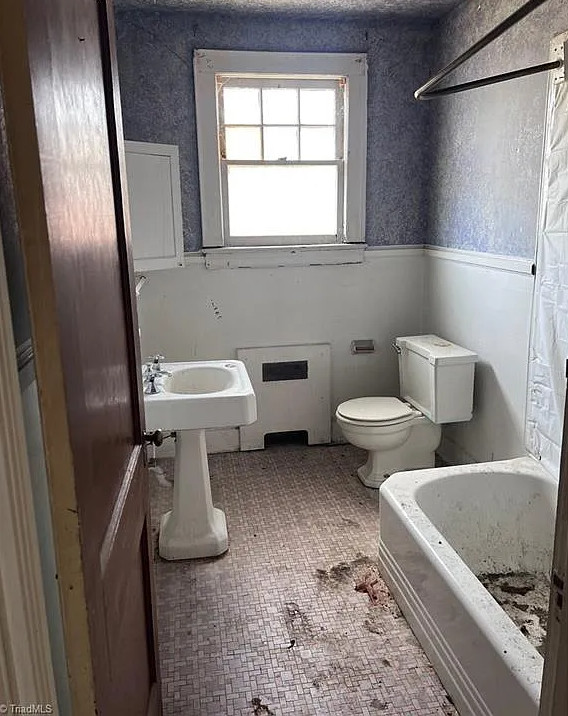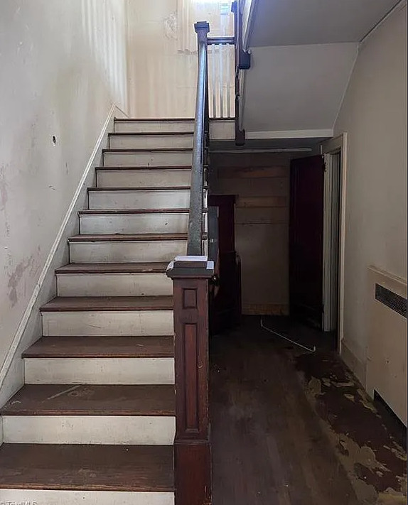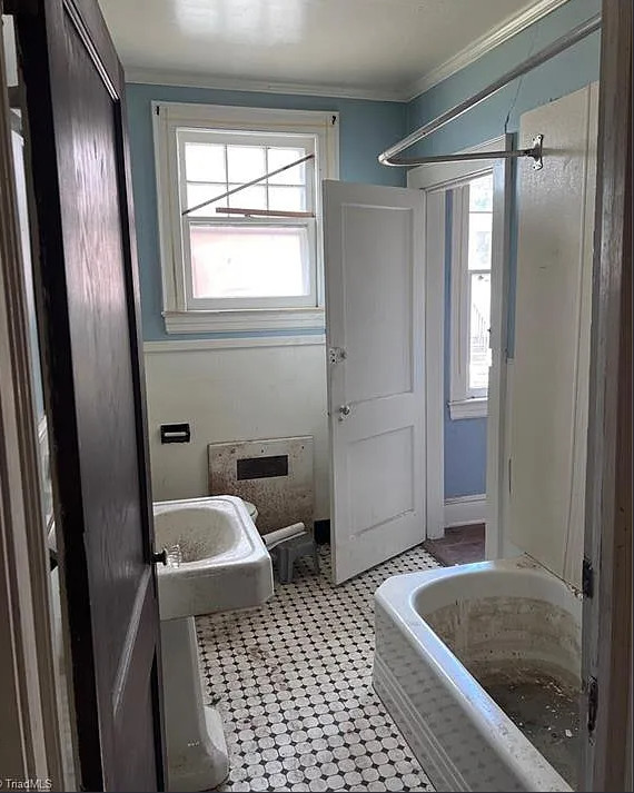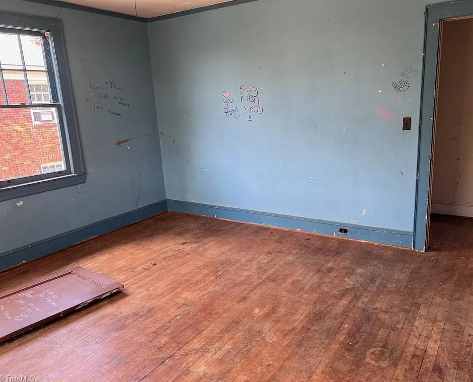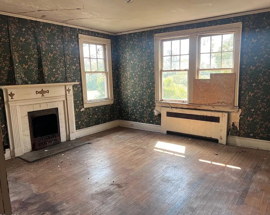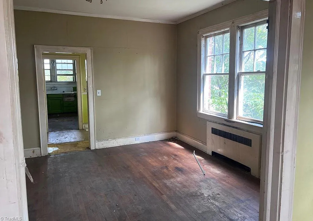 I like that kitchen sink! This fixer upper has a lot of potential! The house was built in 1938. It is located on .19 acre in Lexington, North Carolina. The house features a large covered front porch, original wood floors, french doors, baseboards, great bathtub and a nice staircase. Five bedrooms, two bathrooms and 3,056 square feet. $175,000