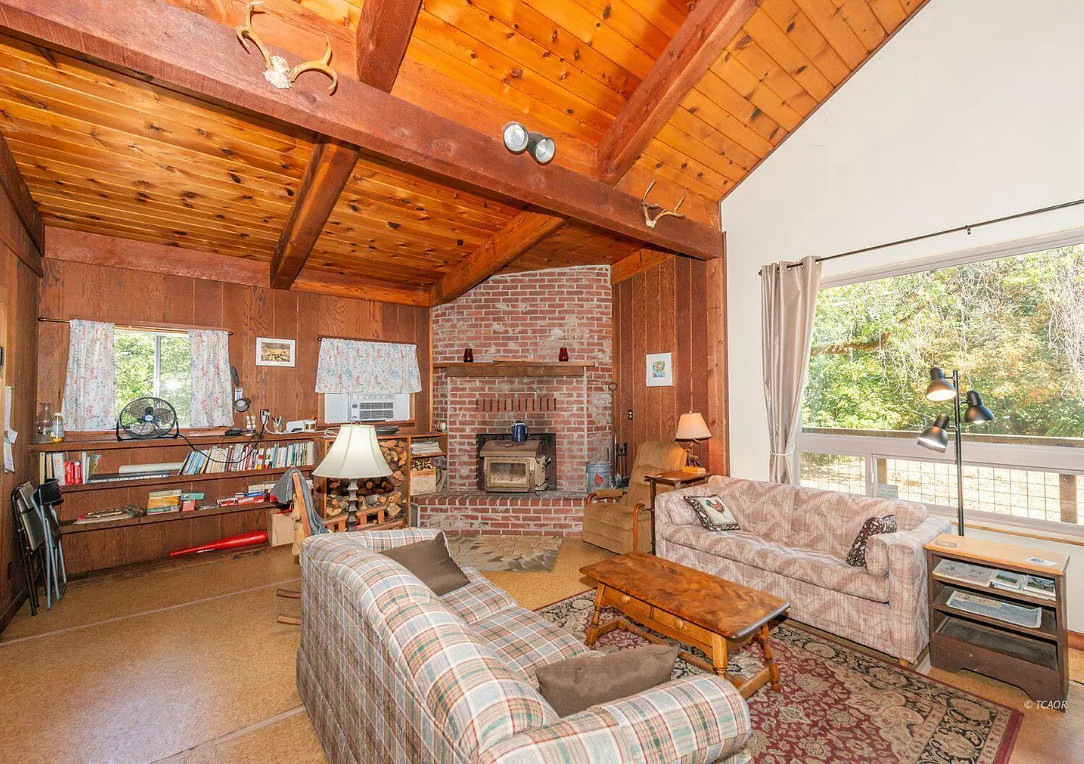 Really nice acreage with this one! Pretty scenery! The house was built in 1937. It is located on 30.46 acres in Big Bar, California. The house features a large deck, knotty pine, brick fireplace, exposed beams and wood ceilings. This house could use some updating and undoing of past renovations. Two bedrooms, two bathrooms and 1,311 square feet. $295,000