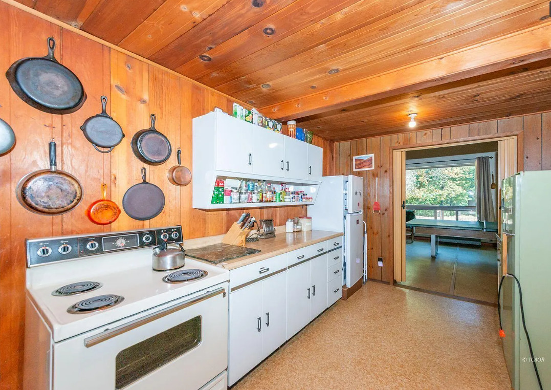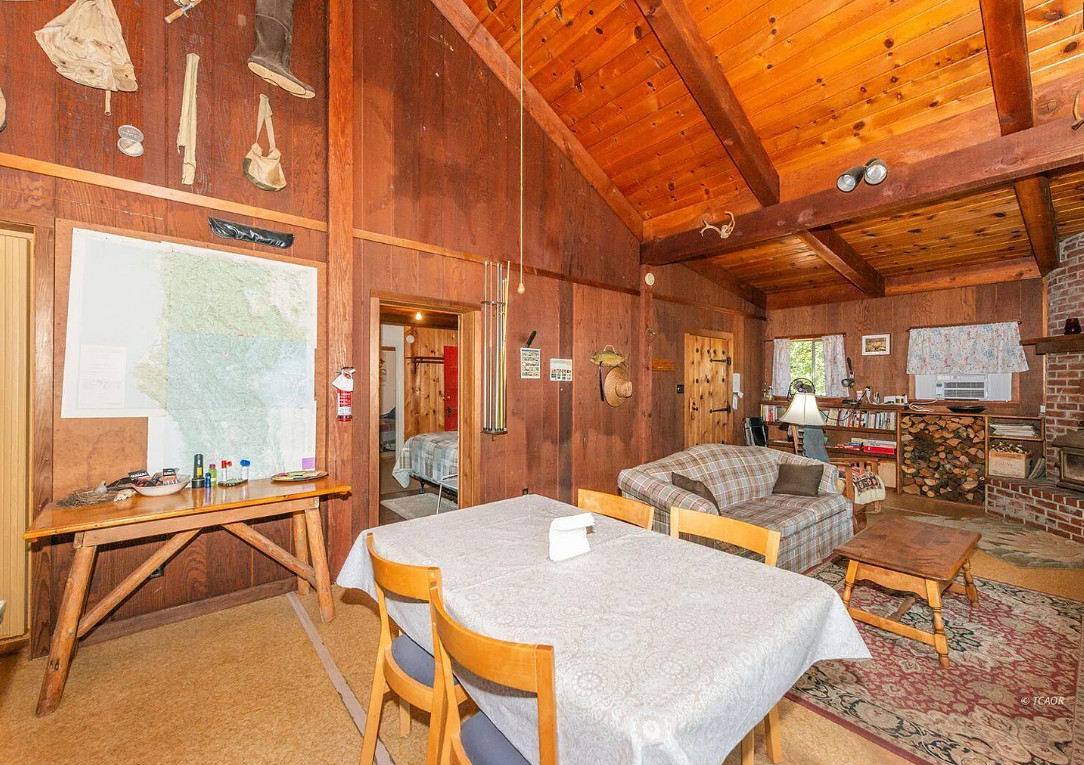 Step back in time with this classic 1940s vintage cabin, expanded in 1975, nestled on 30.46 acres across two separate parcels. This unique property offers a rare blend of rustic charm and practical amenities, perfect for those seeking a peaceful lifestyle surrounded by nature. The cozy 2-bedroom, 2-bath home with 1,311 approx sqft features beautiful knotty pine vaulted ceilings, with a wood stove creating a warm and inviting atmosphere. Relax year-round in the enclosed covered sun porch, both offering views of the lush landscape. Water is abundant here with ponds, a gushing spring, water rights to Price Creek, and a ditch that flows through the property providing ample irrigation possibilities. The open fields are ideal for grazing livestock or simply enjoying the open space and privacy. A dedicated workshop provides space for projects, storage, or hobbies, making this property as functional as it is scenic. Whether you’re looking for a homestead, a getaway, or land with multiple water sources and endless potential, this property delivers. Vacant land parcel address is 490 FS Rd 33N44.