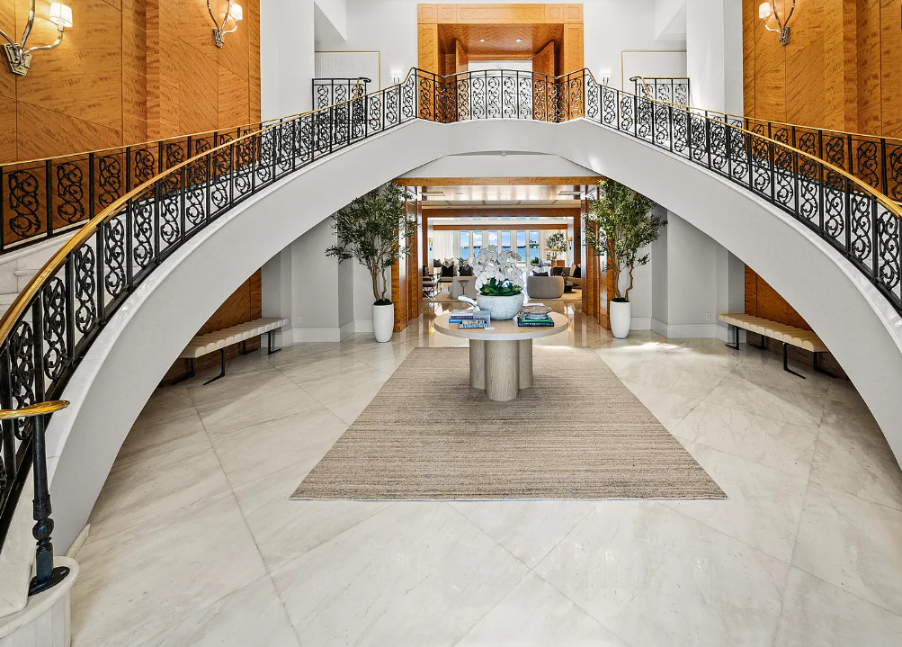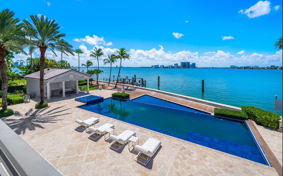 The largest and most valuable waterfront estate in Miami Beach – a landmark property on Billionaire’s Row, North Bay Road, that embodies prestige, privacy, and the pinnacle of luxury living! Sited on 2.3 acres with 290-ft of waterfrontage, this gated, 22,000-sf mansion is designed for grand entertaining while enjoying panoramic water views. Indulgent amenities include a dock, 8-car garage, indoor racquetball court, tennis court, gym, and incredible backyard. A dramatic entry foyer with double-curved grand staircase with ornate ironwork welcomes you inside this timeless home featuring high ceilings, theater, billiard room, entertainment bar, and primary suite crowned with domed ceilings. Estate-style driveway and manicured grounds offer enduring sophistication. For lease furnished, $495K/M