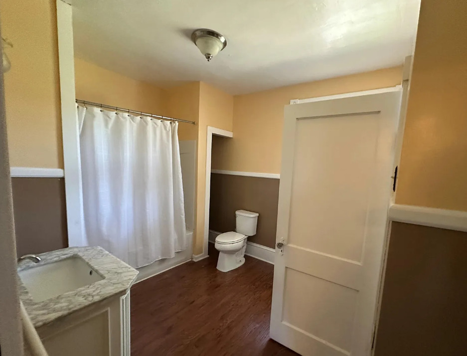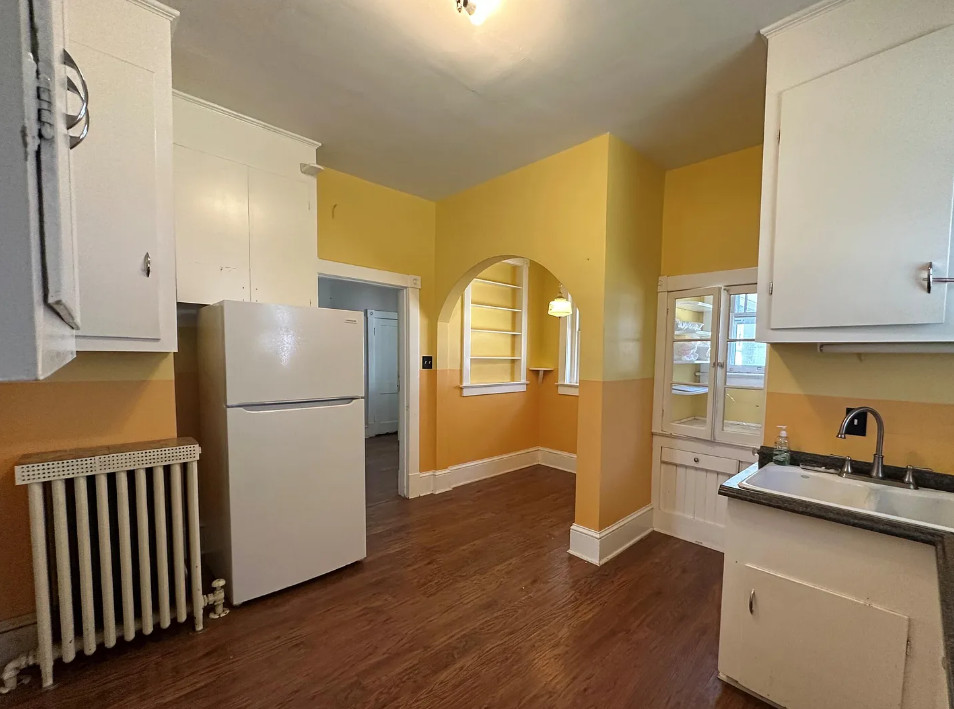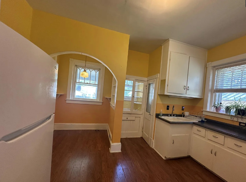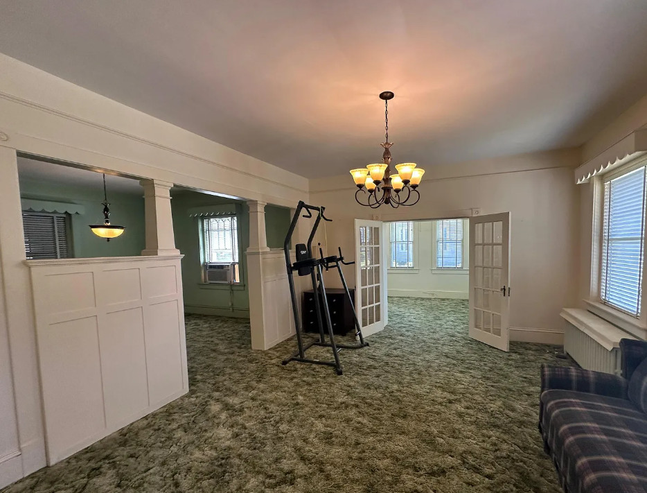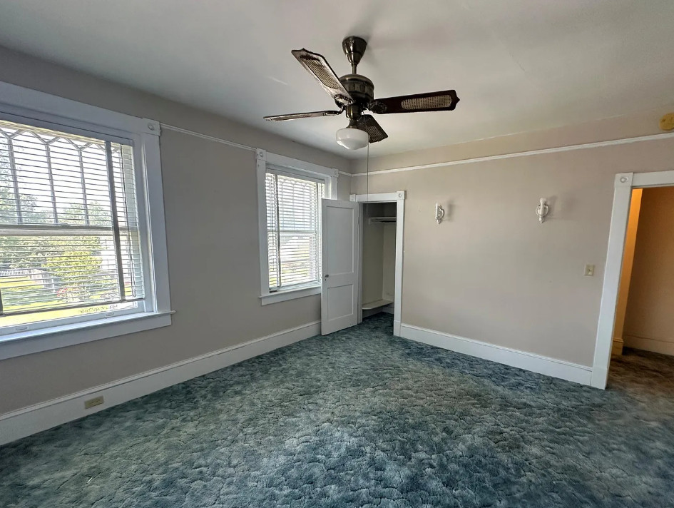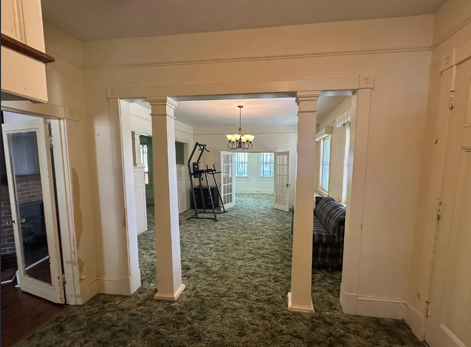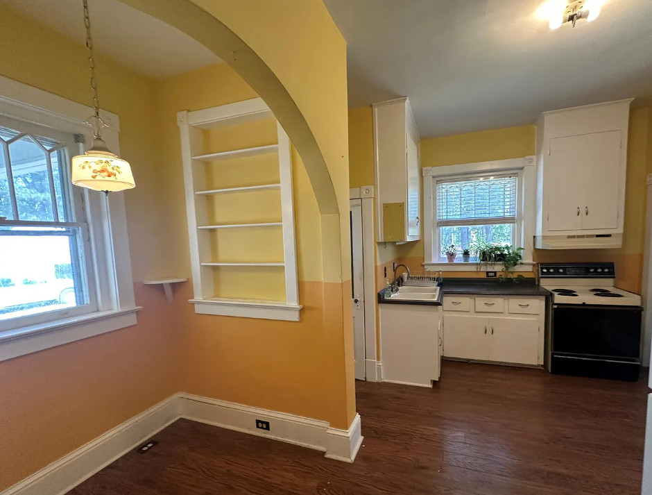 This diamond in the rough has so much potential! So curious why this one isn’t selling! If it were closer I would be so tempted! The house was built in 1925. It is located on .84 acre in Severn, North Carolina. The house features a large covered front porch, a porte cochere, wood floors, kitchen eat in nook with arched entryway, baseboards, picture rails and a sunroom. There is a detached garage and storage on the property. You know the carpeting is protecting hardwood floors underneath! Three bedrooms, two bathrooms and 2,440 square feet. $150,000