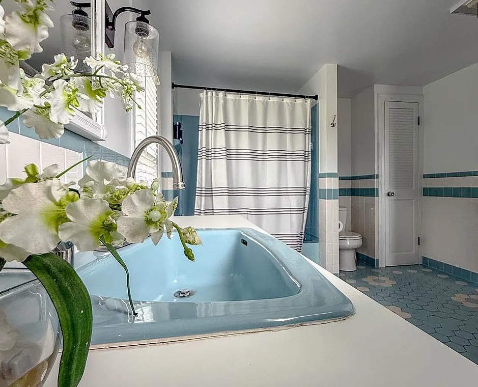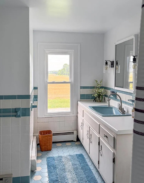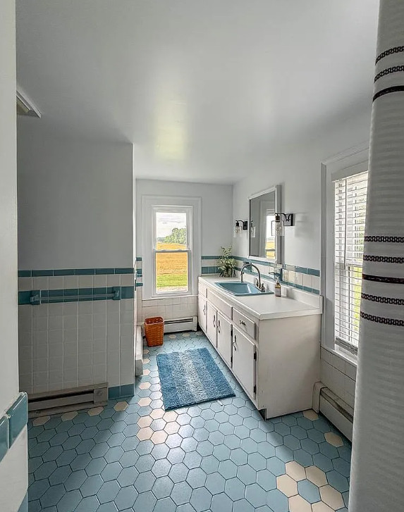 Love the blue bathroom! C. 1900. One acre in Virginia. $359,000