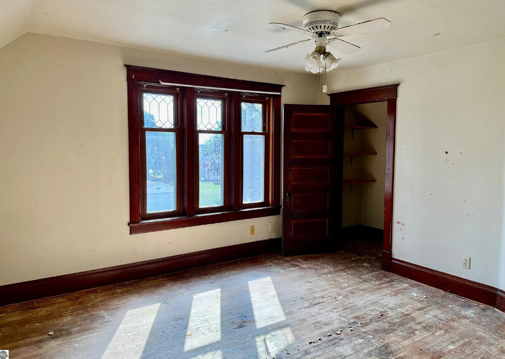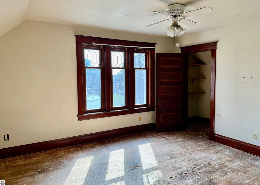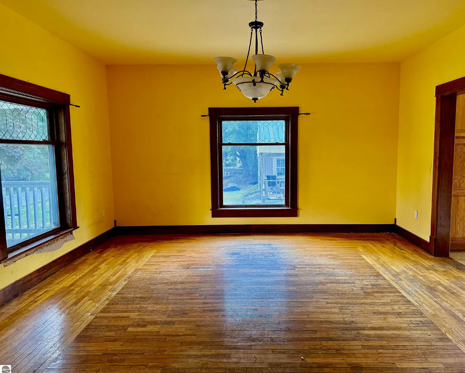 This seems like a really decent price for this house! With 3,500 square feet of living space, it is spacious. The house was built in 1900. It is located on .30 acre in Marion, Michigan. The house features a large covered front porch, original wood floors, baseboards, french doors, functional kitchen and leaded glass. There is a detached storage building in the backyard. Four bedrooms, two bathrooms and 3,500 square feet. $159,900