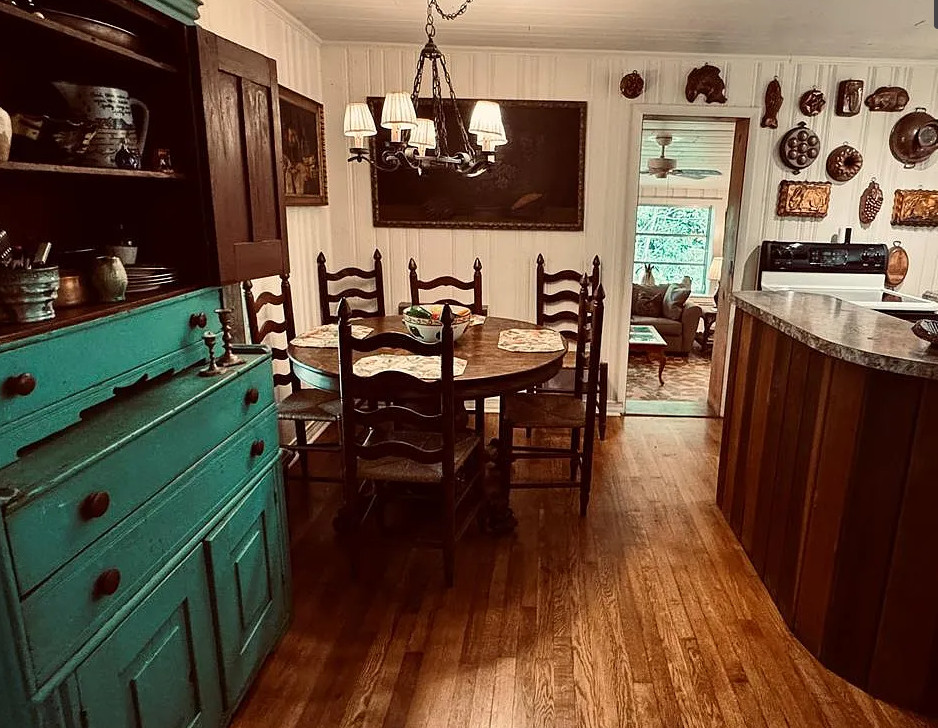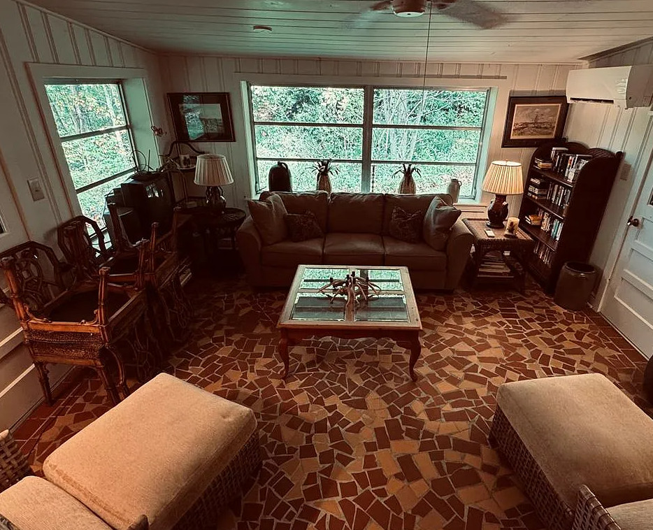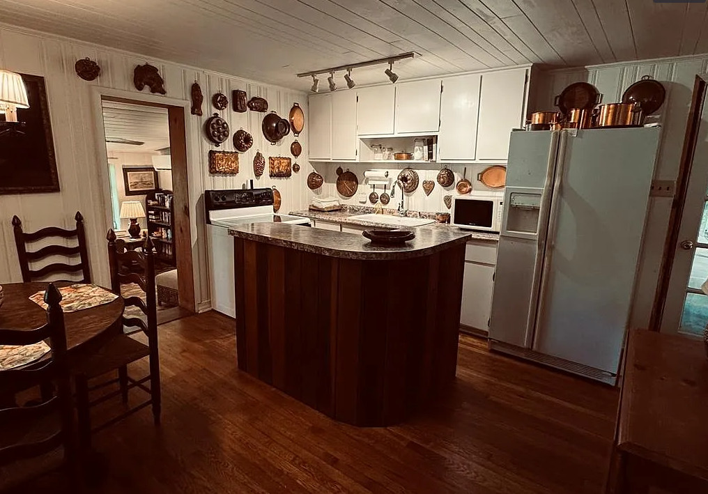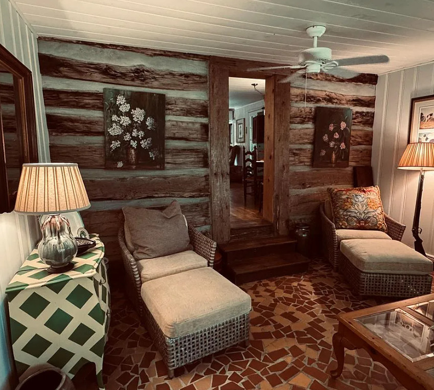 This is beautiful! This started off as a log cabin, then it was added onto in the 1960’s. The cabin was built in 1850. It is located on 1.95 acres in Whittier, North Carolina. The house features a stone chimney, dog trot breezeway, wood floors, bead board, stone fireplace and a vintage tile bathroom. The property is surrounded by US Forest Service land and there is bold creek at the bottom of the property. Two bedrooms, two bathrooms and 1,076 square feet. $375,000
