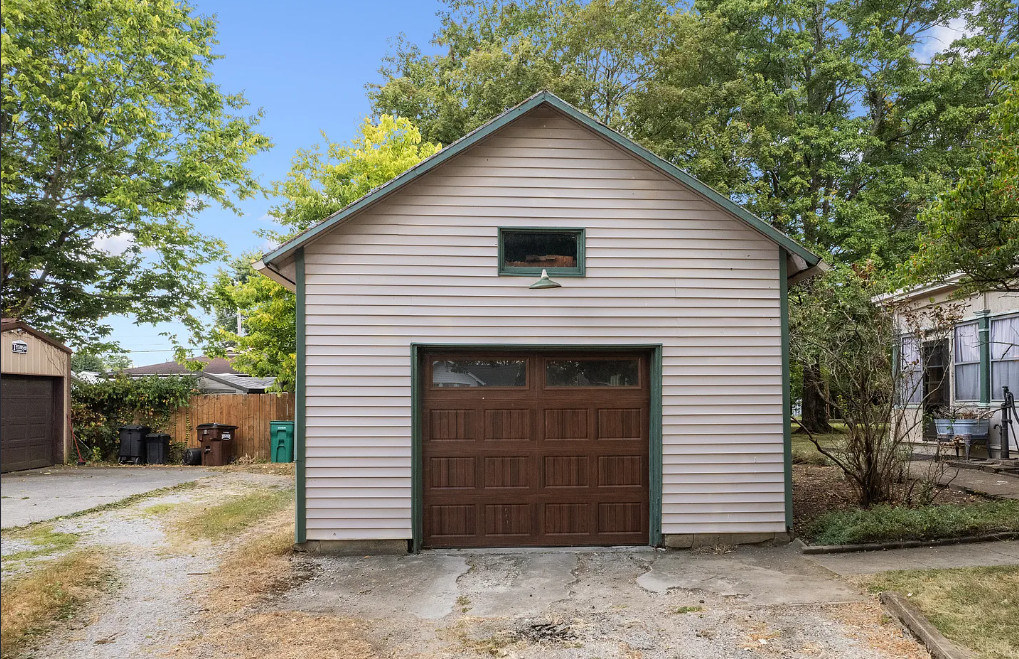 I love those chimneys! The woodwork is really pretty too! The house was built in 1877. It is located on .53 acre in Georgetown, Ohio. The house features a covered front porch, original wood floors, beautiful staircase, transom windows, french doors, chair rails, vintage light fixtures, bay windows and stained glass windows. There is a detached garage on the property. Three bedrooms, three bathrooms and 3,175 square feet. $274,900