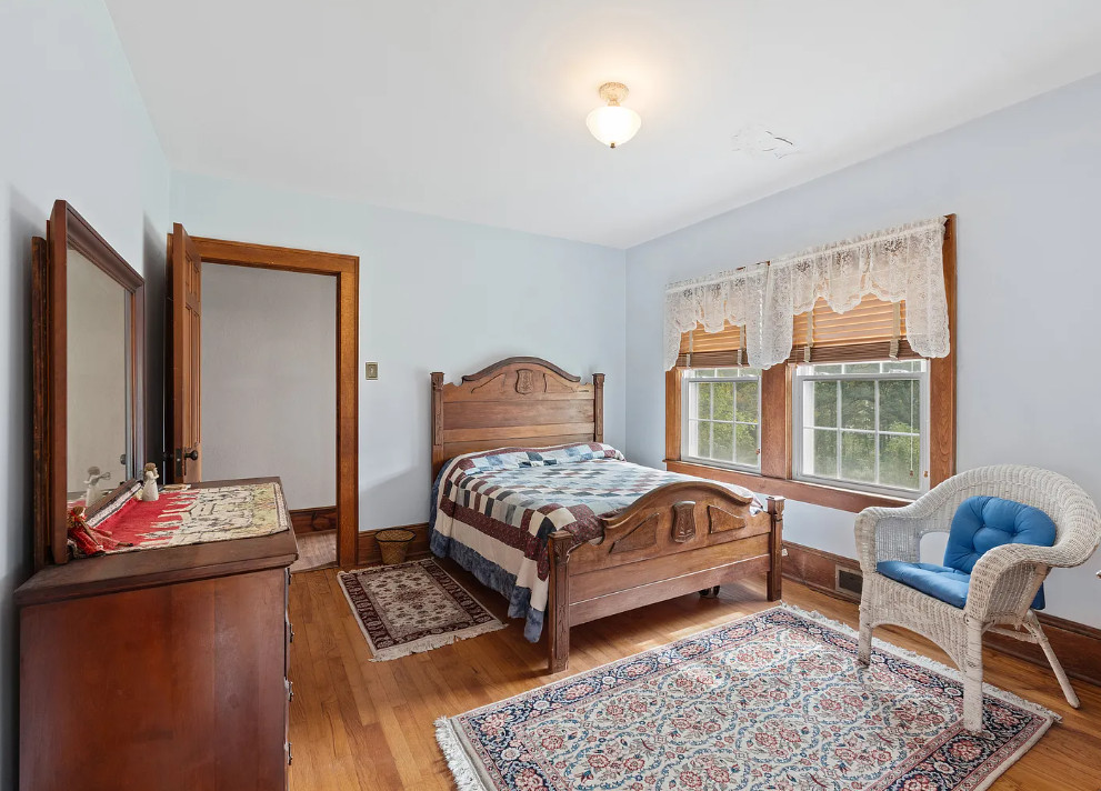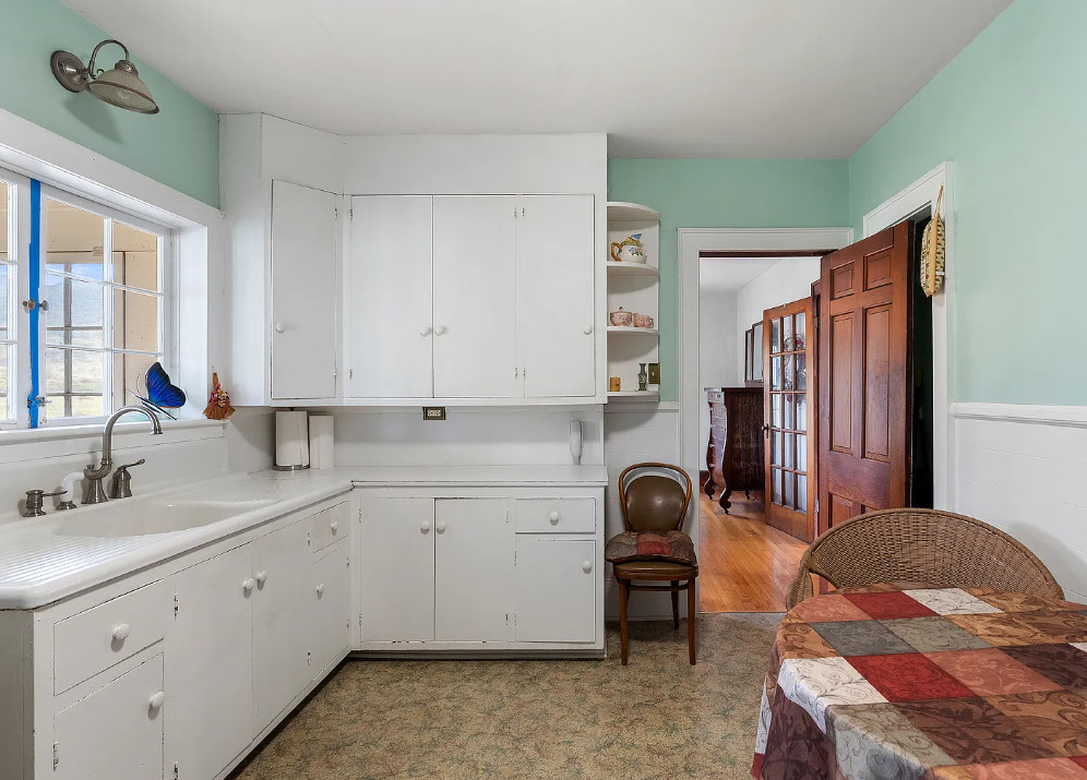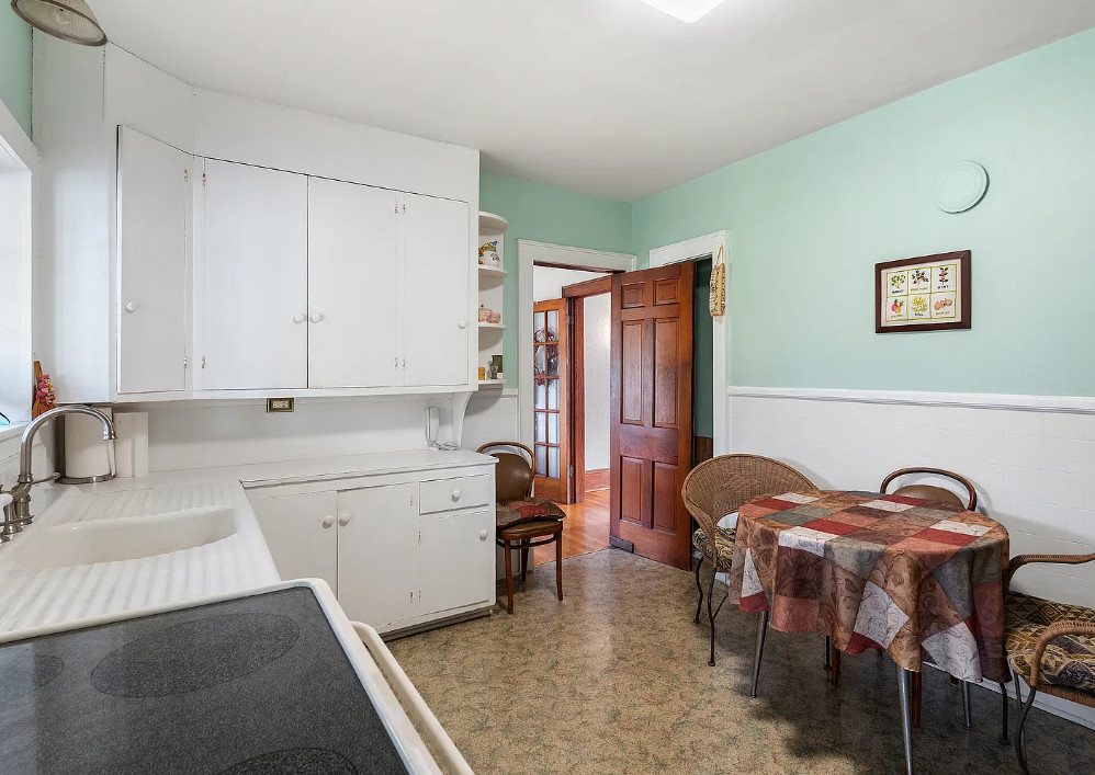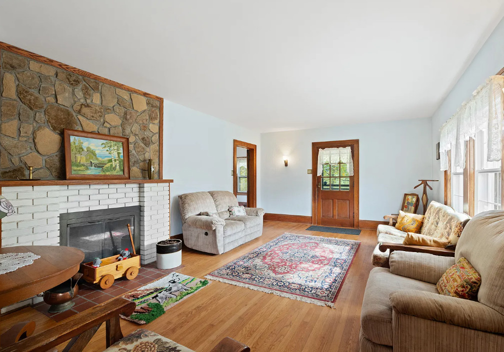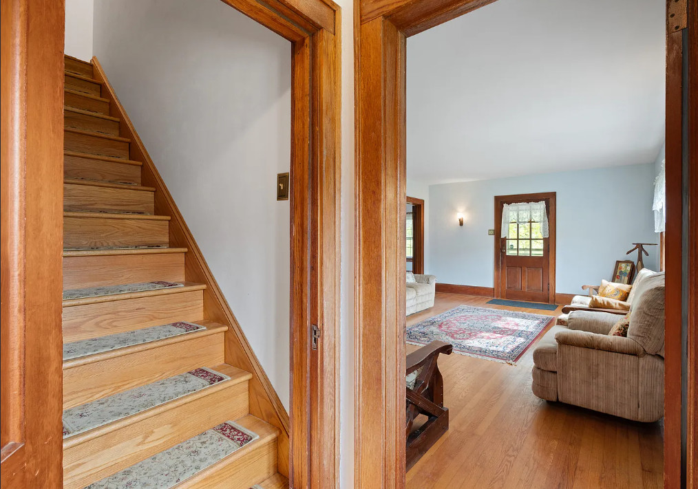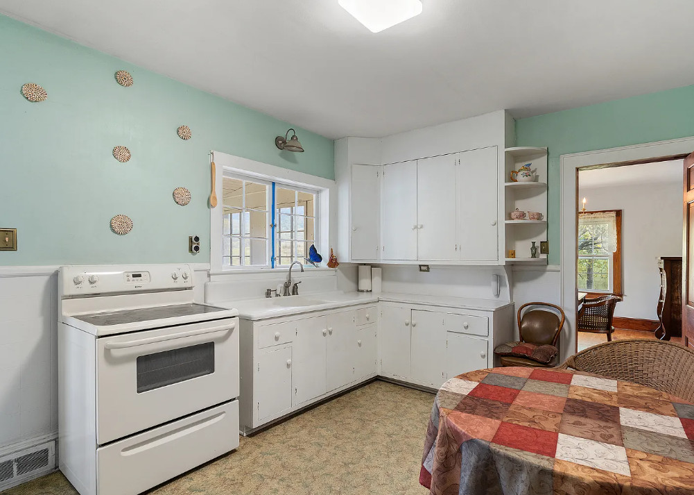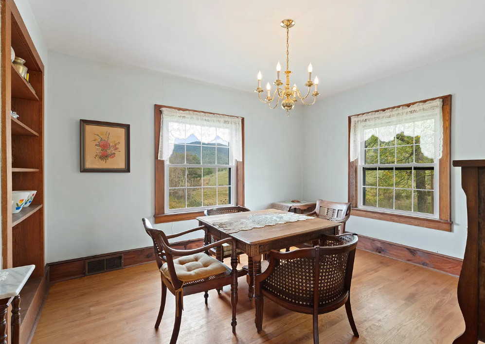 This house has such a pretty setting and it’s in such a pretty area! The house was built in 1938. It is located on five acres in Independence, Virginia. The house features a covered back porch, original wood floors, baseboards, brick fireplace, built-in bookshelves and wainscoting. There is a large basement and a detached storage shed. Three bedrooms, two bathrooms and 1,420 square feet. $268,000