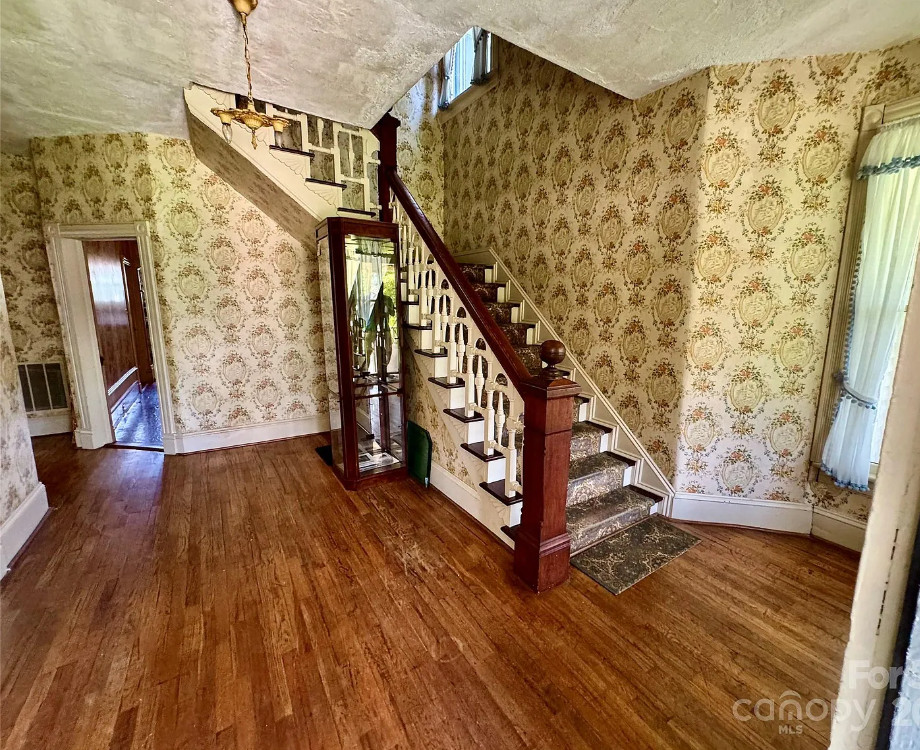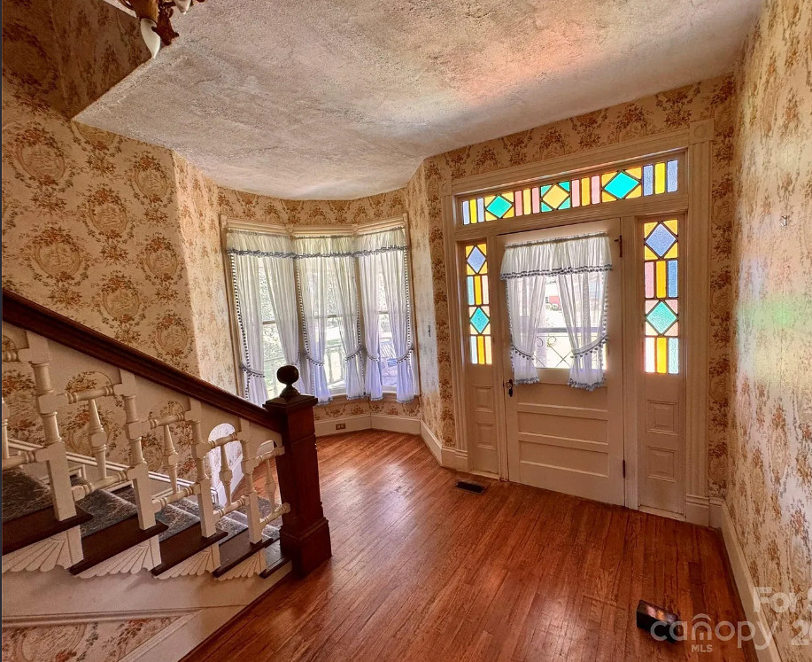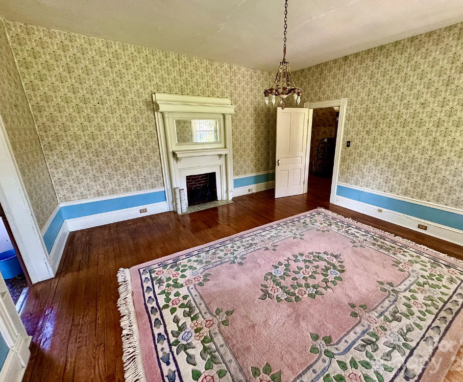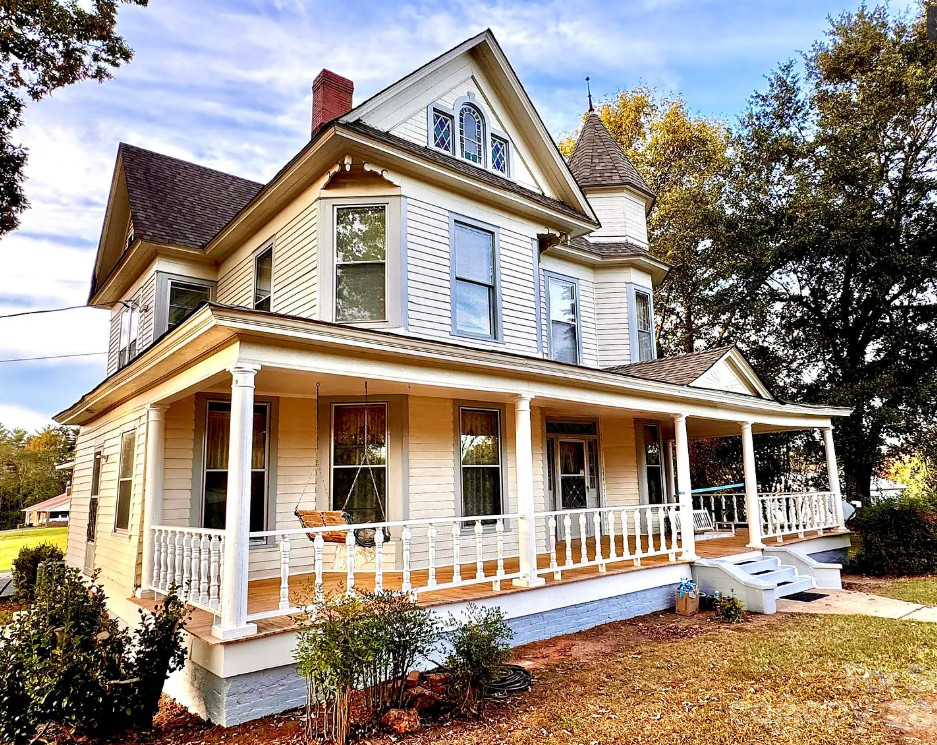 This house has a lot of original features inside! Would be a fun house to work on! The house was built in 1901. It is located on 1.6 acres in Valdese, North Carolina. The house features a large covered front porch, wood floors, vintage light fixtures, seven fireplaces, wide baseboards, beautiful front door with stained glass, french doors, claw foot tub, crown moulding and bead board. There is an attached carport. Four bedrooms, two bathrooms and 2,729 square feet. $399,000