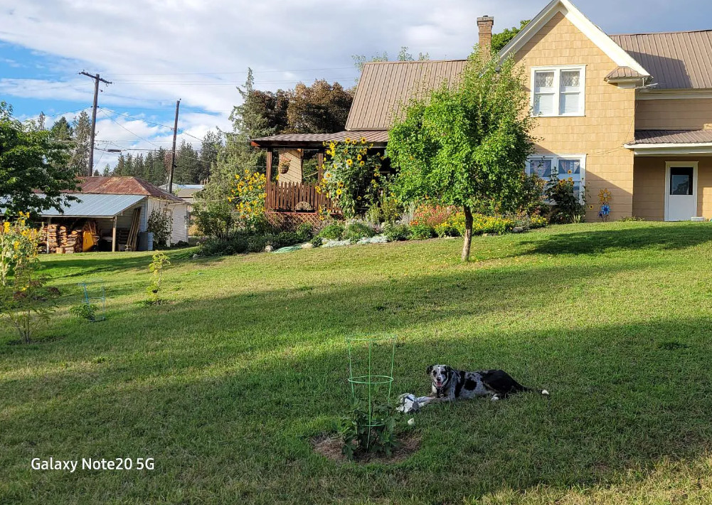 This house has pretty gardens! There are fruit trees on the property! The house was built in 1910. It is located on .43 acre in Thompson Falls, Montana. The house features a wrap around front porch, a covered back porch, original wood floors, baseboards and a covered side porch. There are multiple gardens, berries and fruit trees. There is a chicken coop on the property. Four bedrooms, two bathrooms and 2,408 square feet. $393,250