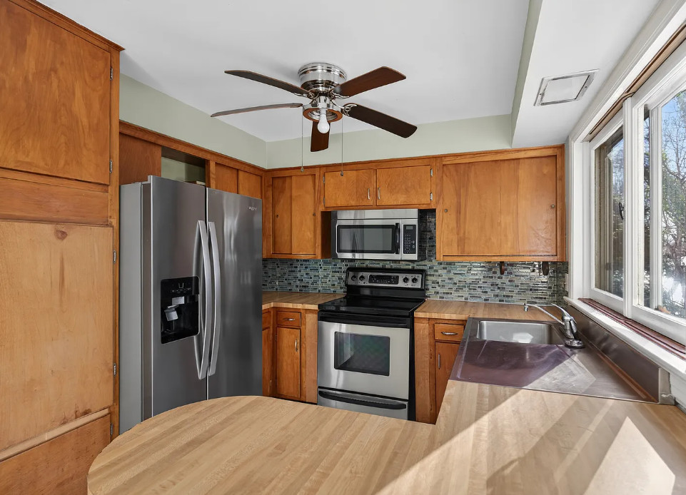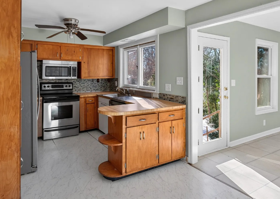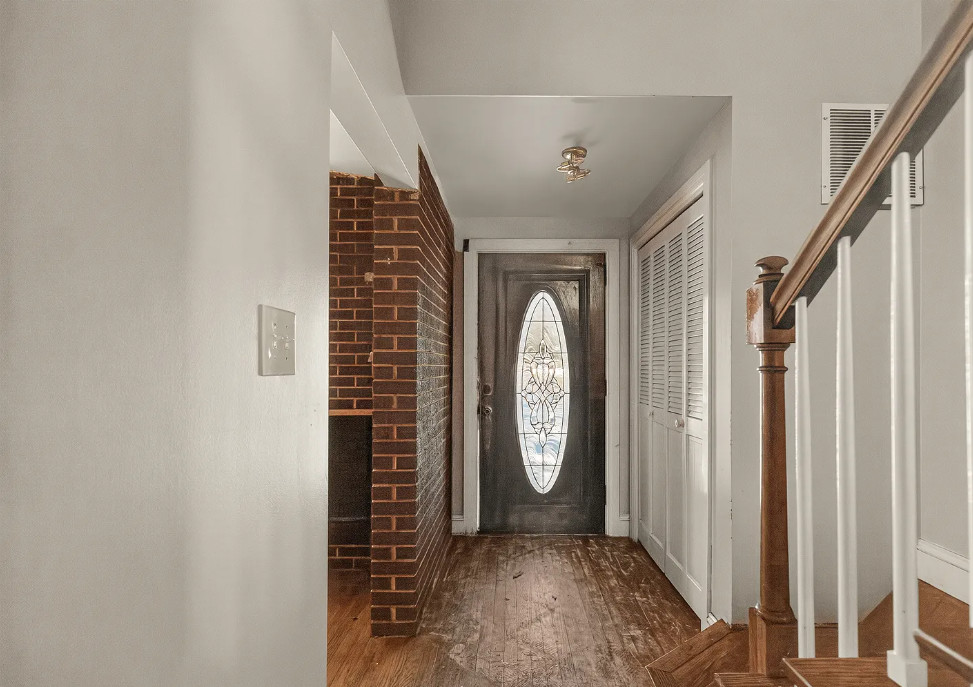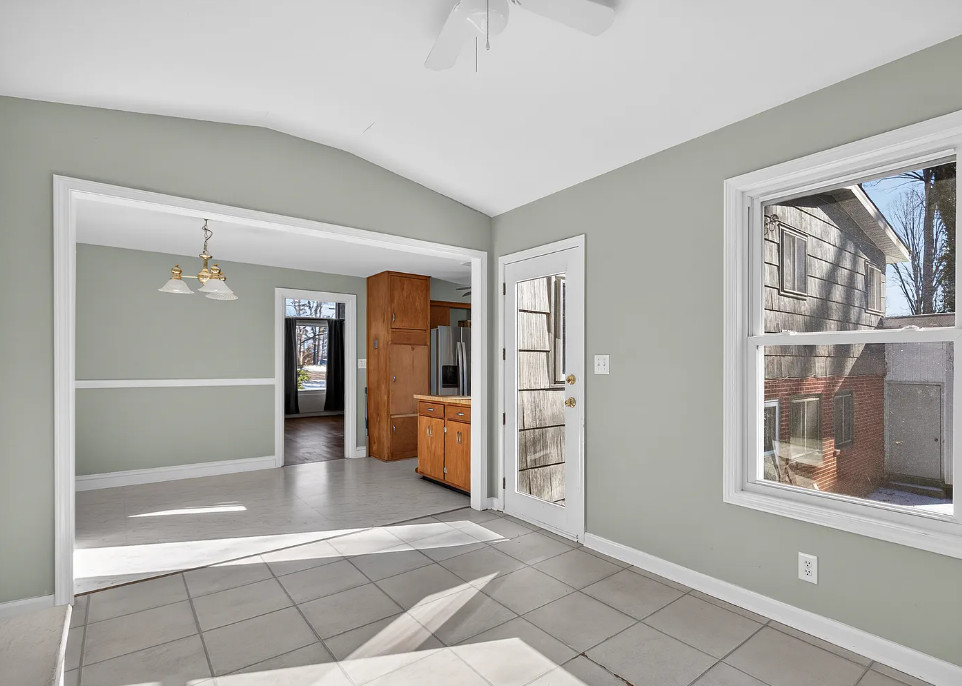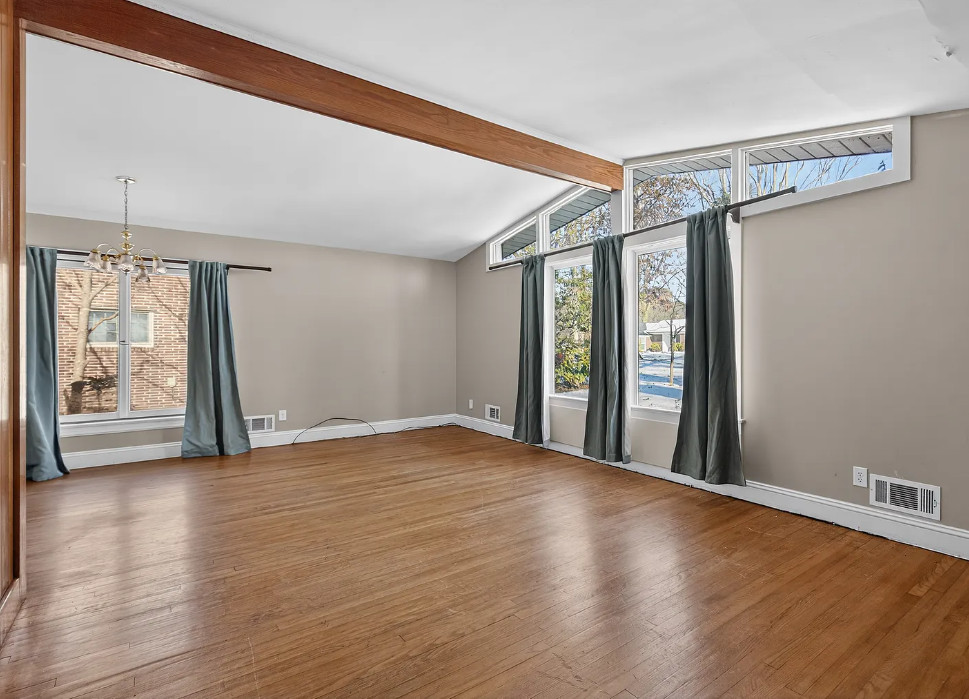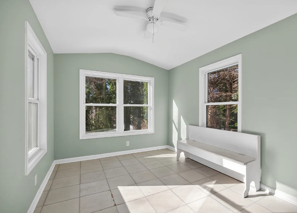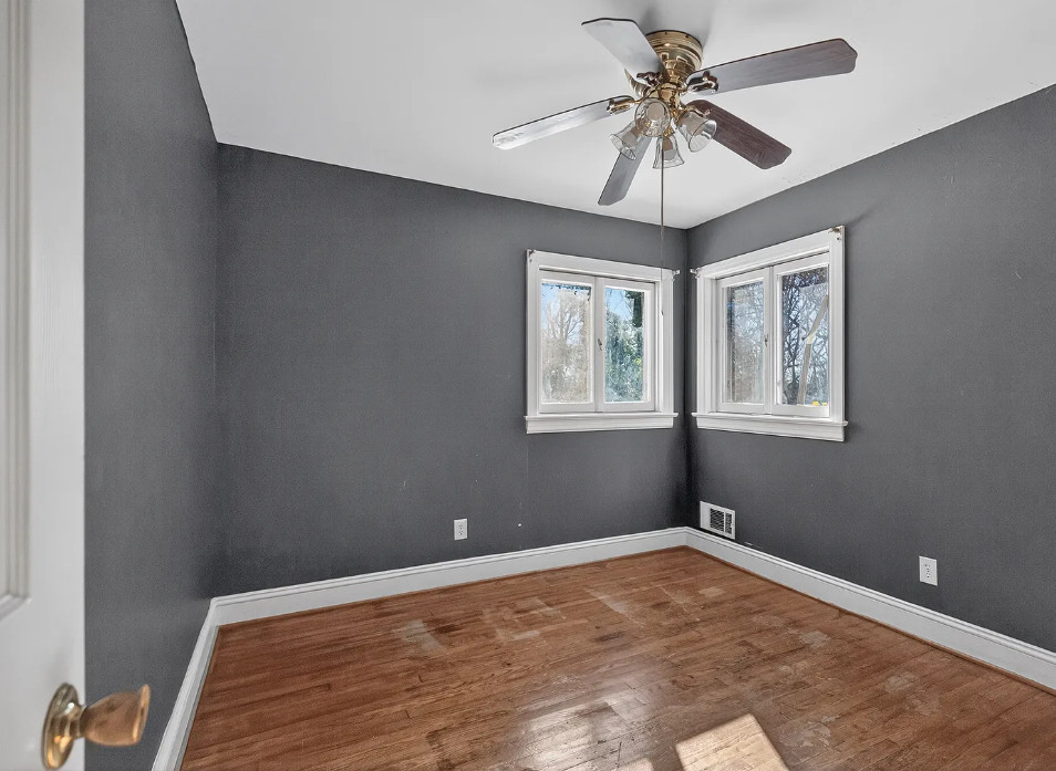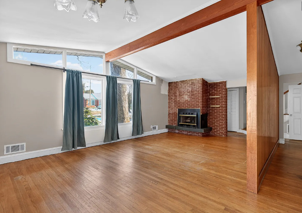 I love the pink tiled bathroom! The house was built in 1955. It is located on .53 acre in Newton, North Carolina. The house features wood floors, vaulted ceiling, brick fireplace, exposed beam, baseboards, chair rails and a two car attached carport. Spacious yard with mature trees. Four bedrooms, two bathrooms and 1,640 square feet. $279,000