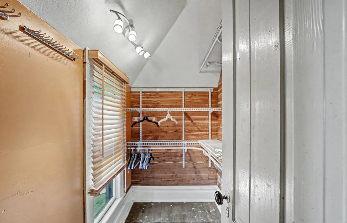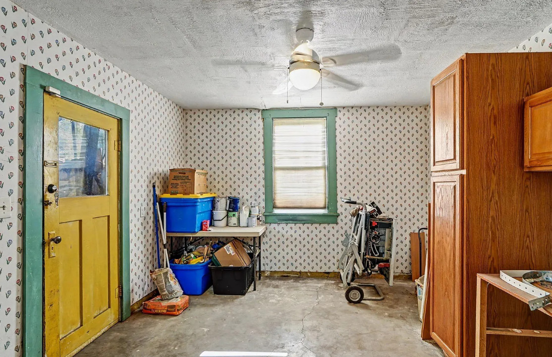 Great wrought iron fence! Pretty mantel! Circa 1940 in Oregon