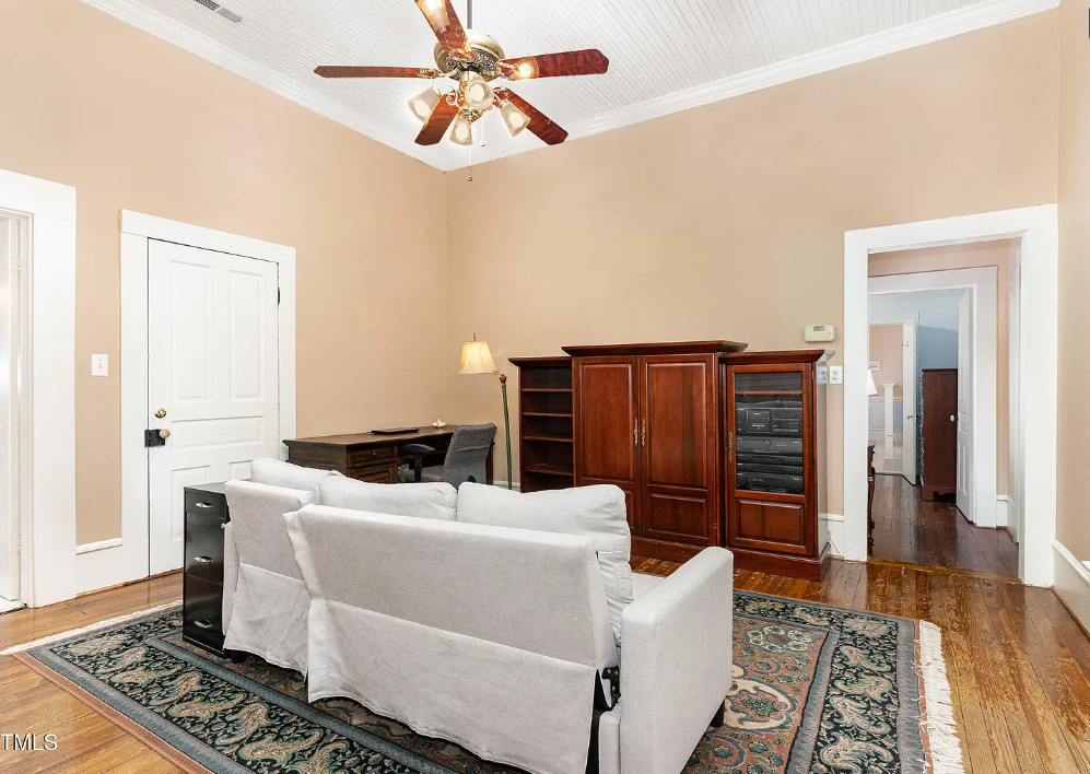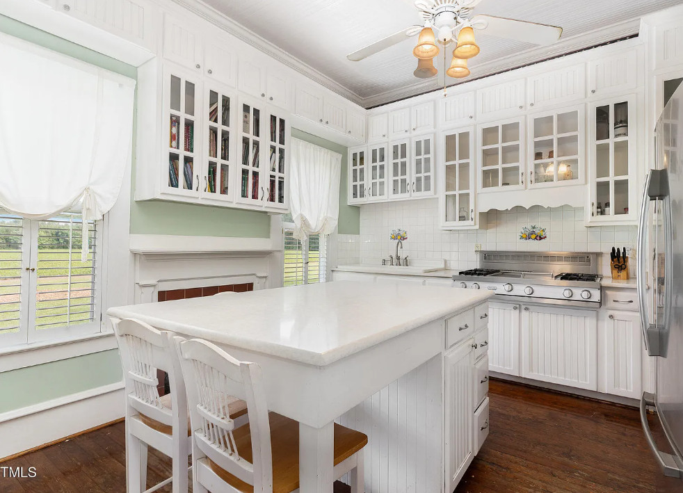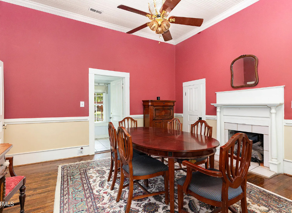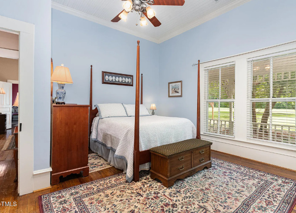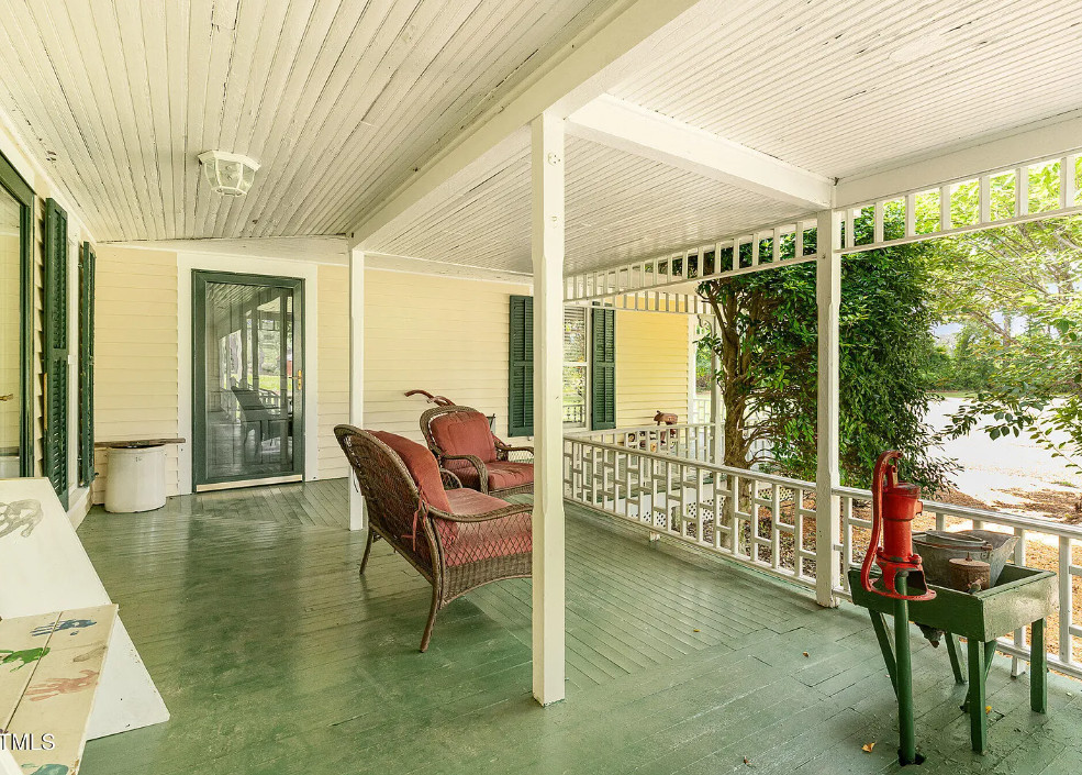 Porch goals! What a great porch this is! The house is nice and there are outbuildings. The house was built in 1907. It is located on 3.77 acres in Bunnlevel, North Carolina. The house features a large wrap around front porch, original wood floors, crown moulding, wide baseboards, tall ceilings, chair rails, spacious kitchen, wainscoting and a claw foot tub. There are outbuildings on the property. Three bedrooms, two bathrooms and 2,290 square feet. $450,000