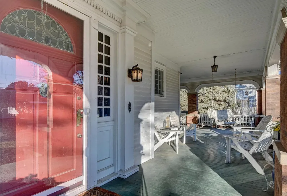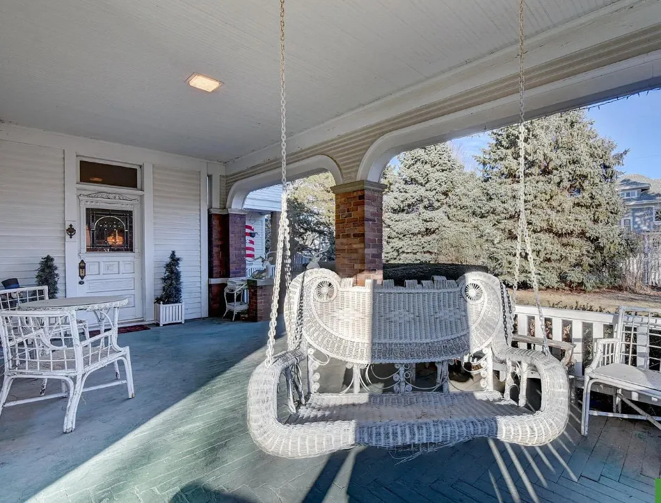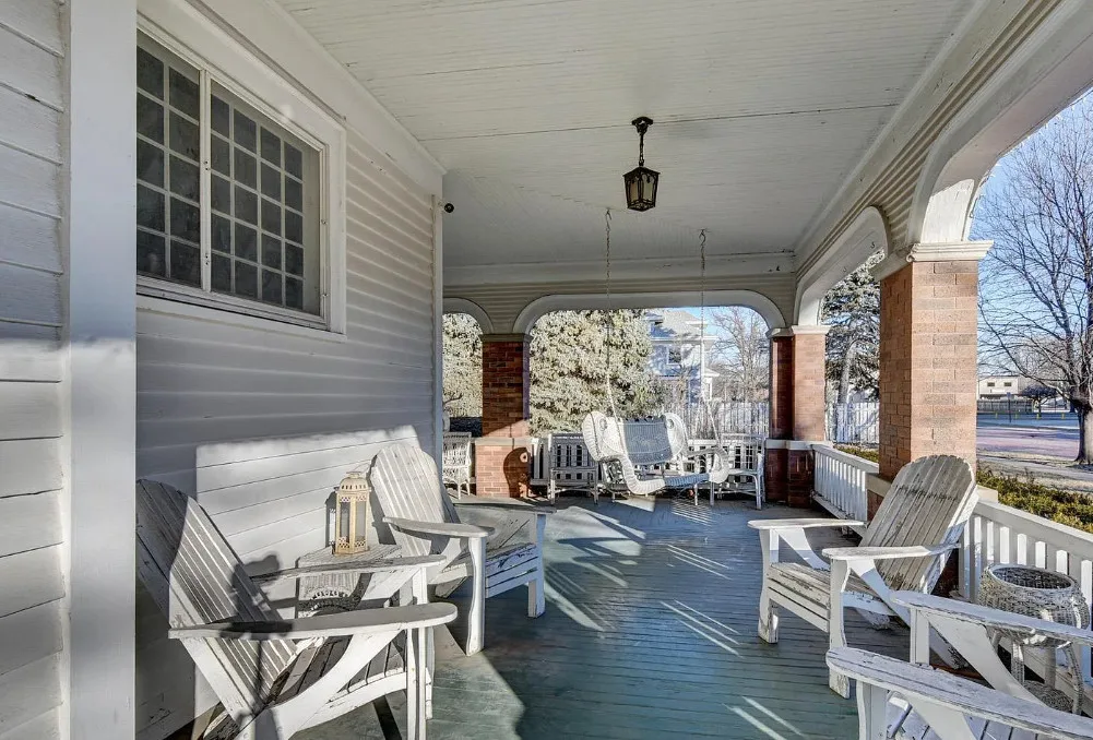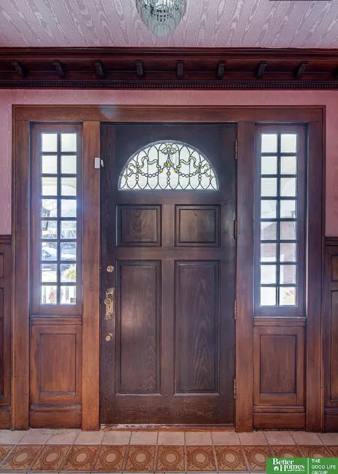 This is quite a house! Huge porch and this house is over 6,000 square feet of living space! It is known as the R. B. Schneider House. It was built in 1887. It is located on .62 acre in Fremont, Nebraska. The house features a large covered front porch, wood floors, tall ceilings, crown moulding, beautiful ceiling medallions, paneled wainscoting, vintage light fixtures, grand staircase, built-in seating, coffered ceilings, leaded glass and original mantels. There is a large four car garage. Four bedrooms, eight bathrooms and 6,642 square feet. $800,000