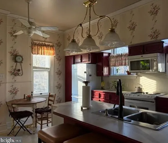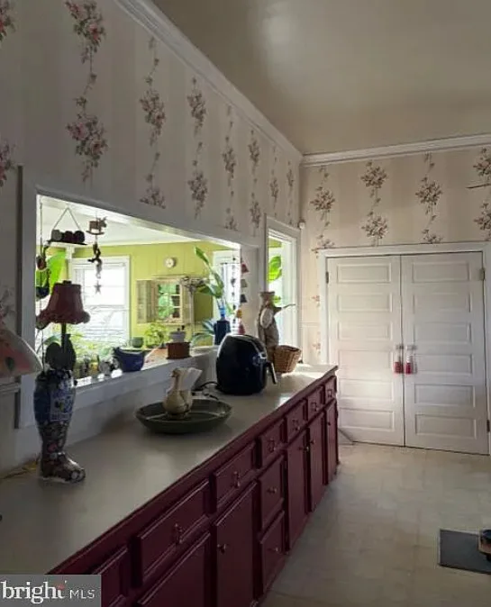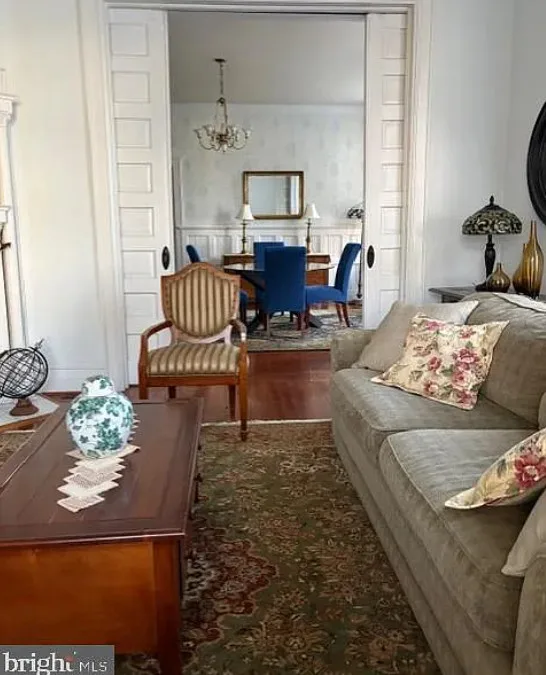 This house has a pretty interior! I love the foyer! The house was built in 1911. It is located on .41 acre in South Boston, Virginia. The house features a covered front porch, a large back deck, wood floors, wainscoting, crown moulding, wide baseboards, large pocket doors, original mantels and a spacious kitchen. Three bedrooms, two bathrooms and 2,464 square feet. $289,900