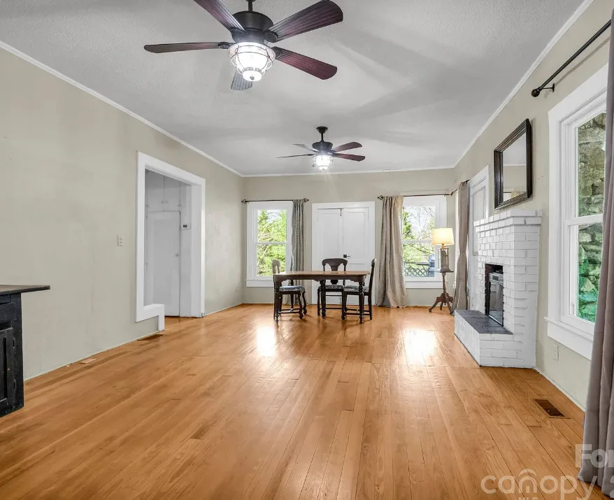 Located in Hendersonville’s Hillside Park, this charming 1925 cottage offers an appealing opportunity for investors, second-home buyers, or anyone seeking an attractive short-term or long-term rental property, in a setting that supports an active outdoor lifestyle. Set on 0.26 acres on a wooded hillside near Laurel Park, the Ecusta Trail, Jump Off Rock, and downtown Hendersonville, this two-bedroom, one-bath home offers 956 square feet with convenient access to hiking, cycling, and scenic overlooks. Owned and maintained by the same family for more than half a century, the residence retains its original character with pine floors throughout and an inviting fireplace with brick interior and stone chimney. A wraparound porch and deck extend the living space outdoors, providing a peaceful setting to enjoy wooded views, privacy, and the sounds of nature. Recent improvements completed in 2015 include the roof, heat pump, electrical system, and most windows. With proximity to parks, trails, local breweries, and restaurants, the property offers convenient access to both outdoor recreation and all the amenities of downtown Hendersonville.