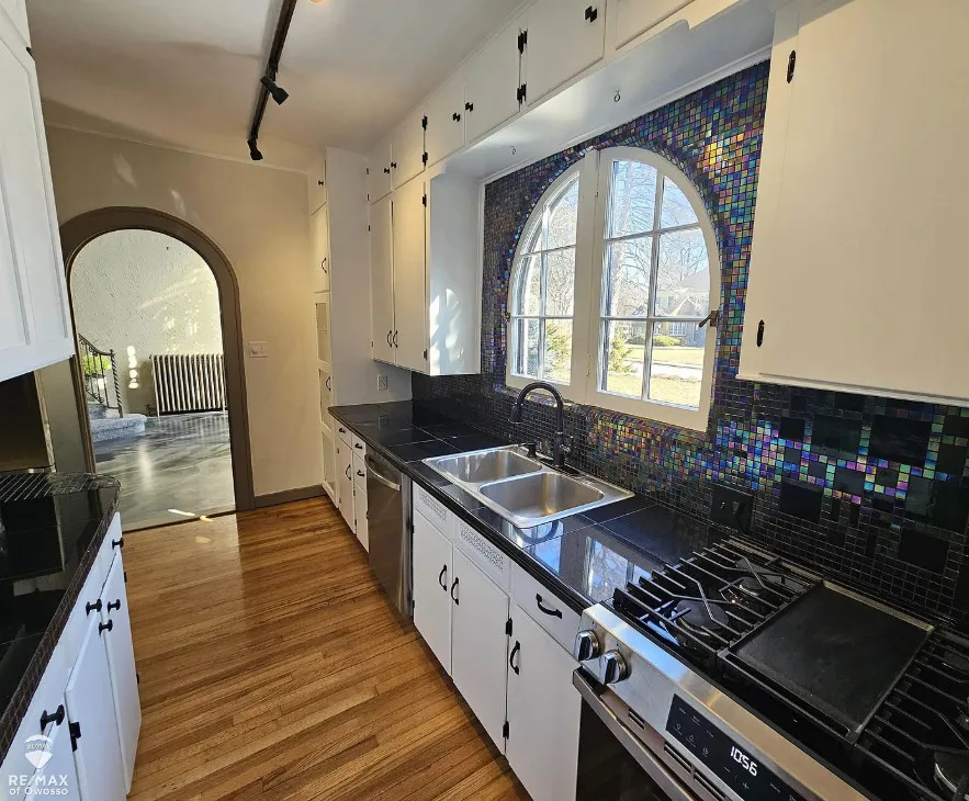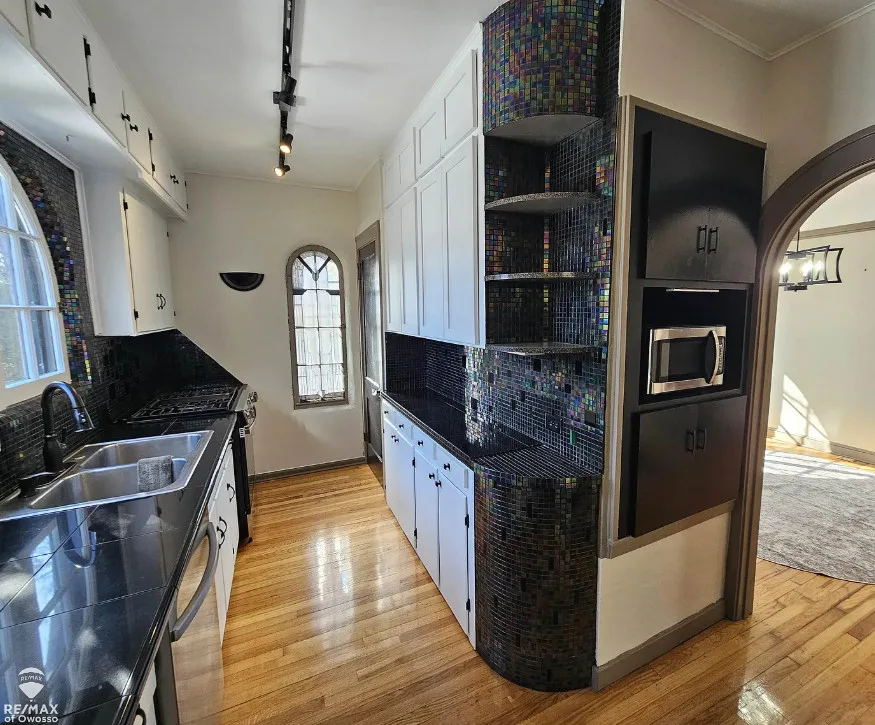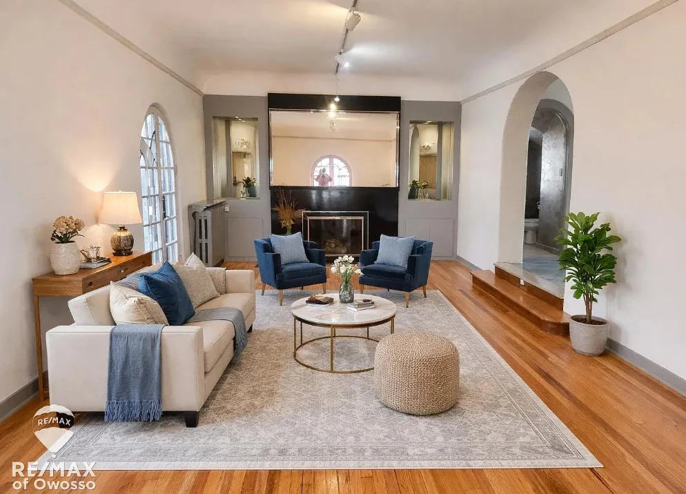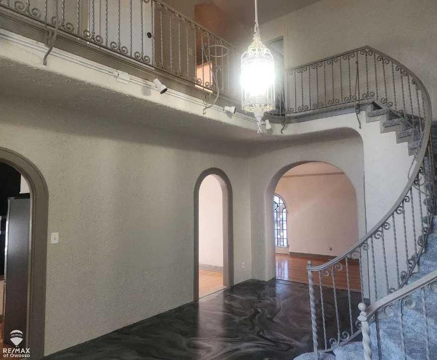 Looking for something truly unique? This beautifully renovated 3-bedroom, 2-bath Spanish Revival home offers over 2,430 square feet of distinctive living space. Classic stucco exterior, rounded doors and windows, and timeless architectural details highlight its 1940s character. A dramatic wrapping staircase with cathedral ceiling and catwalk creates a stunning focal point. The spacious 13 x 29 family room features a fireplace and built-in cabinetry, perfect for relaxing or entertaining. Enjoy the landscaped backyard with multiple fountains and inviting outdoor space. A rare find in Saginaw—don’t miss this one-of-a-kind home!