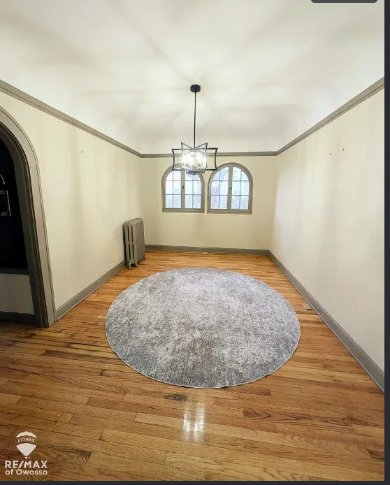 Not sure how I feel about the foyer floor. But there are some pretty details inside! The house was built in 1930. IT is located in Saginaw, Michigan. The house features a grand staircase, arched doors and windows, wood floors, crown moulding, baseobards, built-ins and updated bathrooms. There is a basement and a garage. Three bedrooms, two bathrooms and 2,430 square feet. $249,900