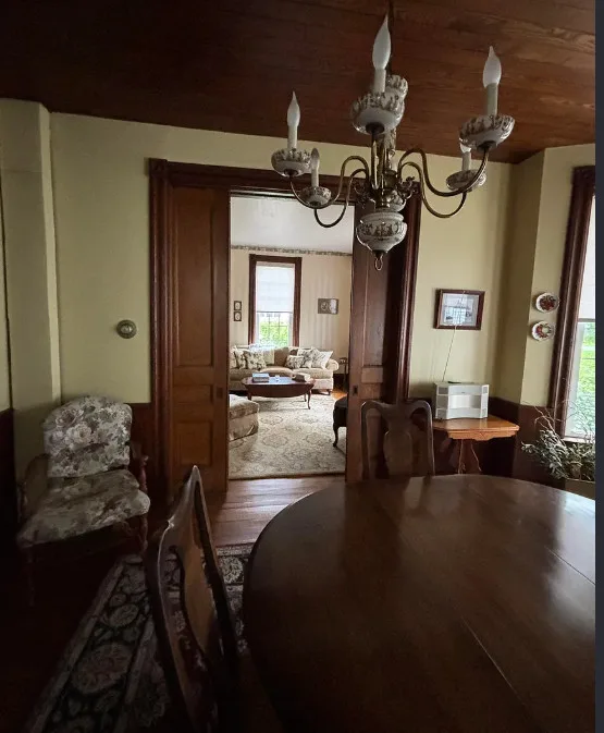 This gorgeous home and carriage house are situated on 4.8 waterfront acres along the Deer River. This home is so spacious, you’ll need to see it to believe it! It boasts 5/6 bedrooms and 2 1/2 bathrooms. There are a main floor bedroom and full bathroom that also houses the stackable washer and dryer. As you approach the front door, you will be welcomed with an adorable front porch with a ceiling fan and seating to admire all of the beautiful flowers located in the front yard. When entering the front doors, you will find the original wood doors and stained-glass window. As you step inside, there is a small foyer. To the left is the living room featuring hardwood floors, original wood trim, and gorgeous original pocket doors that separate it from the formal dining room. The dining room also has hardwood flooring, a big bow window, and a built-in China cabinet. Moving towards the back of the home, you will pass through a large kitchen and a good-sized mudroom/sunroom. Off the sunroom is a lovely wraparound, screened porch where you can sit and enjoy your oversized backyard and waterfront views. Also on the main floor is 1 bedroom and what is currently a second living room which could easily be made into another bedroom. As you head up the stunning staircase to look at the 2nd story, check out the beautiful wood used for the stairs and banister. At the top of the stairs, the 1st room you will come to is the upstairs full bathroom. It is a Jack & Jill bathroom, accessible from the hallway, as well as one of the large bedrooms. Beyond that bathroom, there is the 1/2 bath. It is conveniently located just outside another large bedroom with a decent sized walk-in closet and large windows that overlook the backyard and river. Coming back down the hall on the other side, there are 2 more large bedrooms. There are so many stunning, original features in this house, from floors, trim, doorknobs and more. Don’t wait to schedule your private showing today! This one won’t last long!