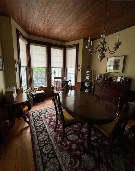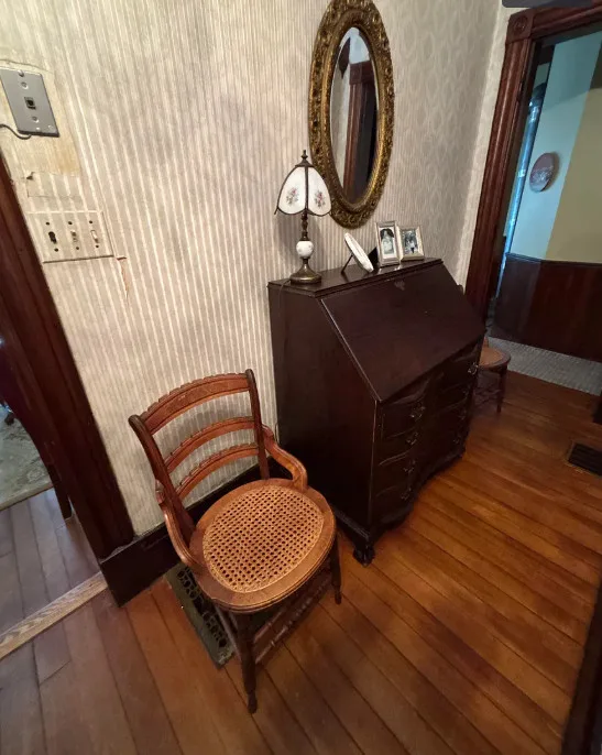 This is a pretty house! I wish they showed the riverfront! The house was built in 1890. It is located on 4.8 acres in Brasher Falls, New York. The house features a small covered porch, wood floors, double front doors, leaded glass, baseboards, nice staircase and pocket doors. The house could use a bit of updating, but it is livable so one could work room by room. There is a spacious backyard that leads back to the river. Five bedrooms and three bathrooms. $259,900