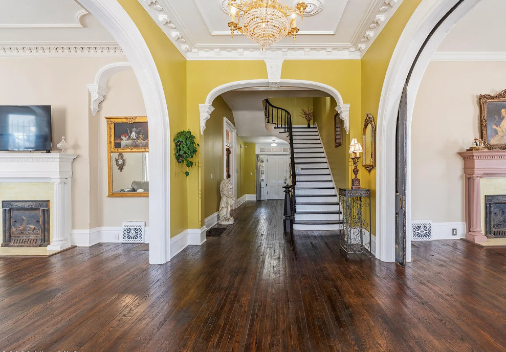 This is a beautiful house! I love those arched pocket doors! Known as the H. C. Watson House. This home was built in 1883. It is located on 1.3 acres in Rockingham, North Carolina. Henry Clay Watson was a prominent business owner and credited with helping develop Rockingham’s downtown area and most noted for owning one of the first hearses in the area. He also owned a funeral home. The H. C. Watson House features a two story portico, a large wrap around porch, a porte cochere, a screened in porch, wood floors, beautiful arched pocket doors, crown moulding, ceiling medallions, wide baseboards, tall ceilings, crystal chandeliers, leaded glass, vintage light fixtures, pretty mantels, transom windows, built-ins, sunroom, great butler’s pantry and an updated kitchen. This is a big house! Five bedrooms, six bathrooms and 4,650 square feet. $495,000
