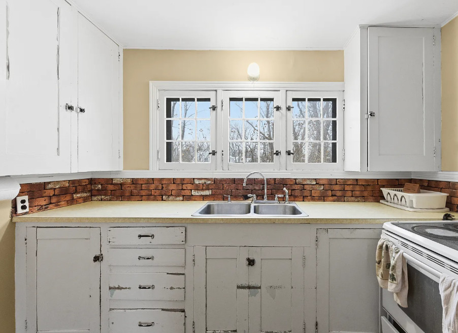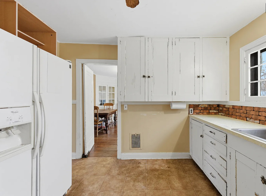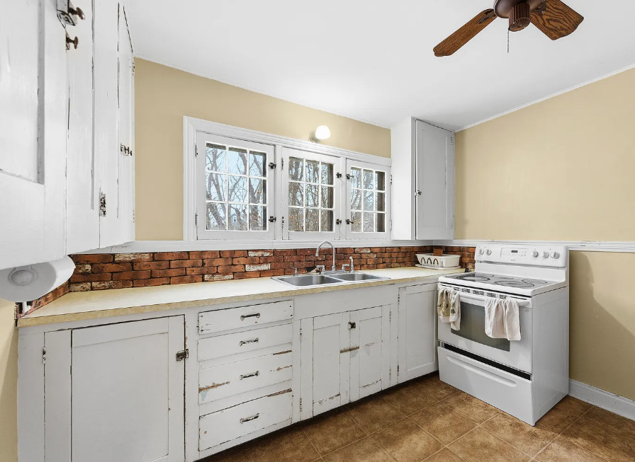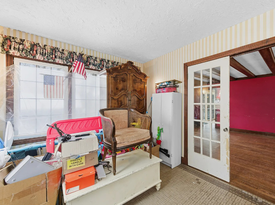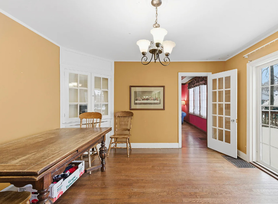 Love a good Tudor house! This one has a lot of potential! The house was built in 1930. It is located in Painesville, Ohio. The house features wood floors, wainscoting, chair rails, built-in corner china cabinet, exposed beams, baseboards, french doors and a back staircase. There is a large unfinished basement. Three bedrooms, two bathrooms and 2,727 square feet. $164,900