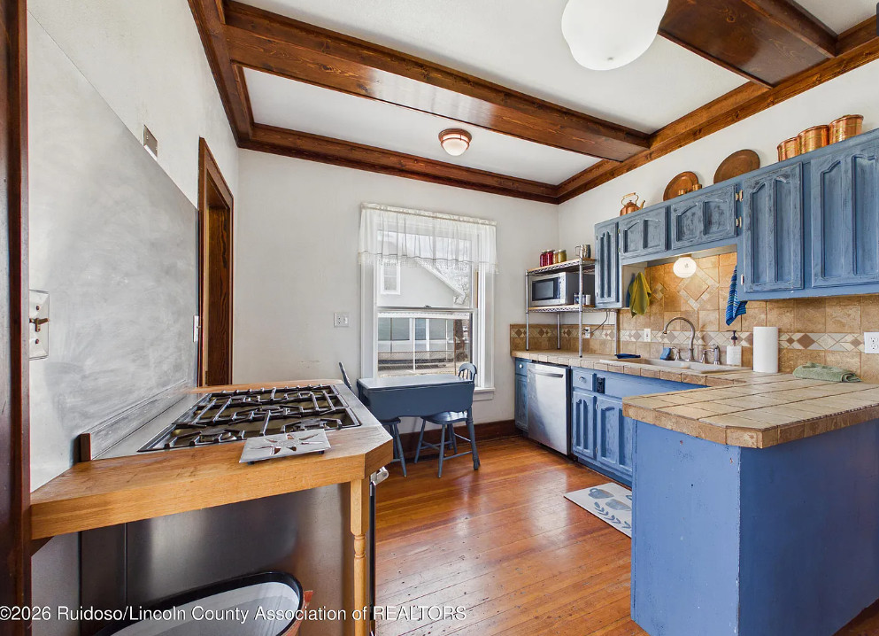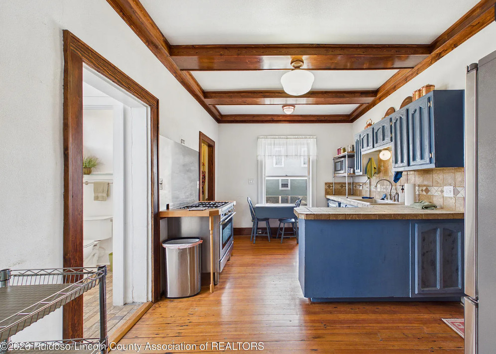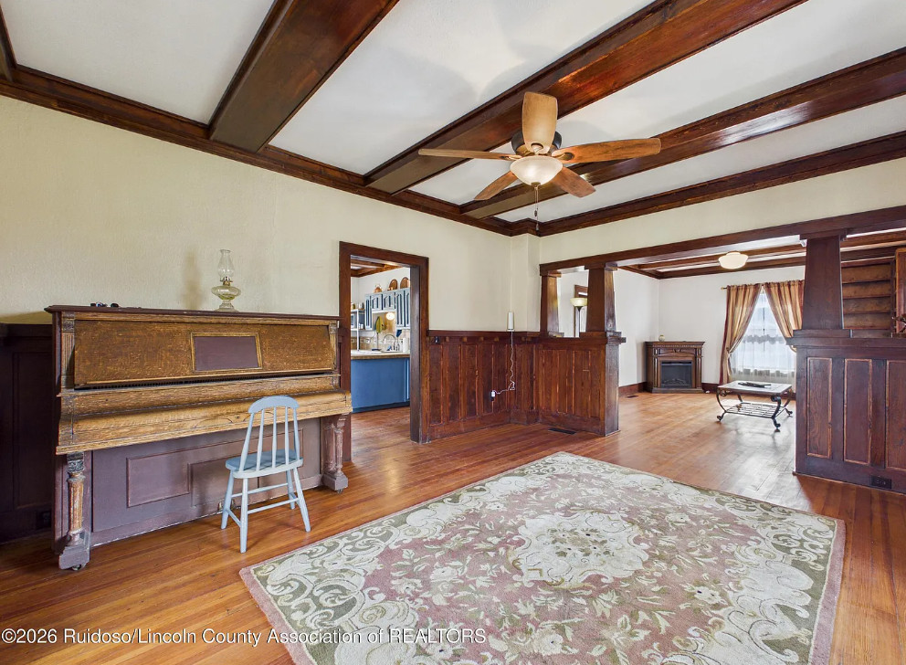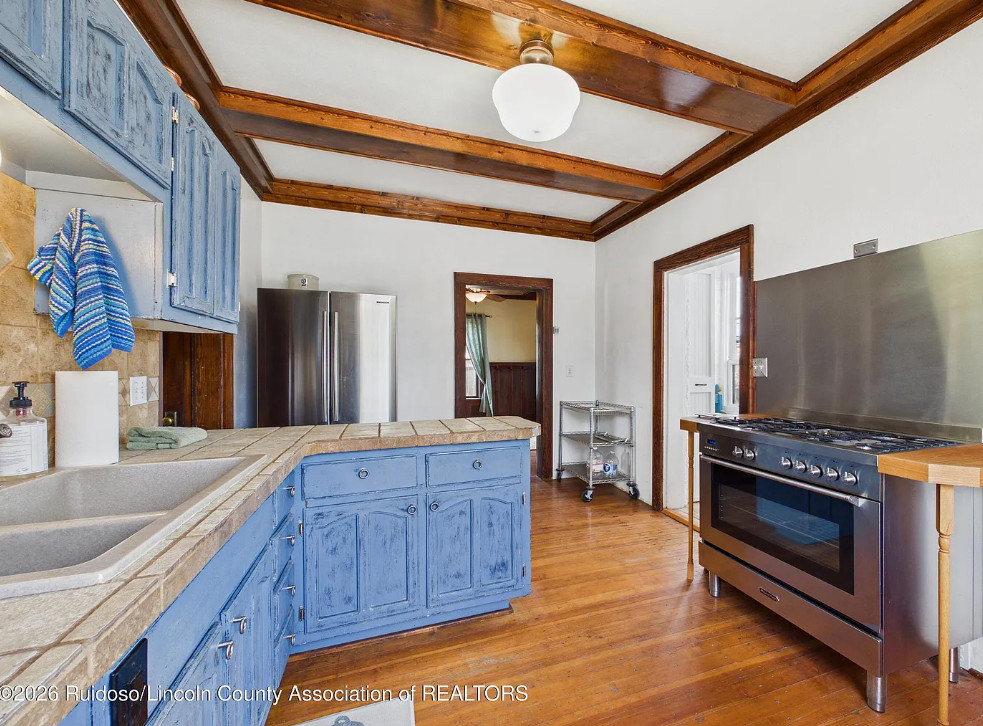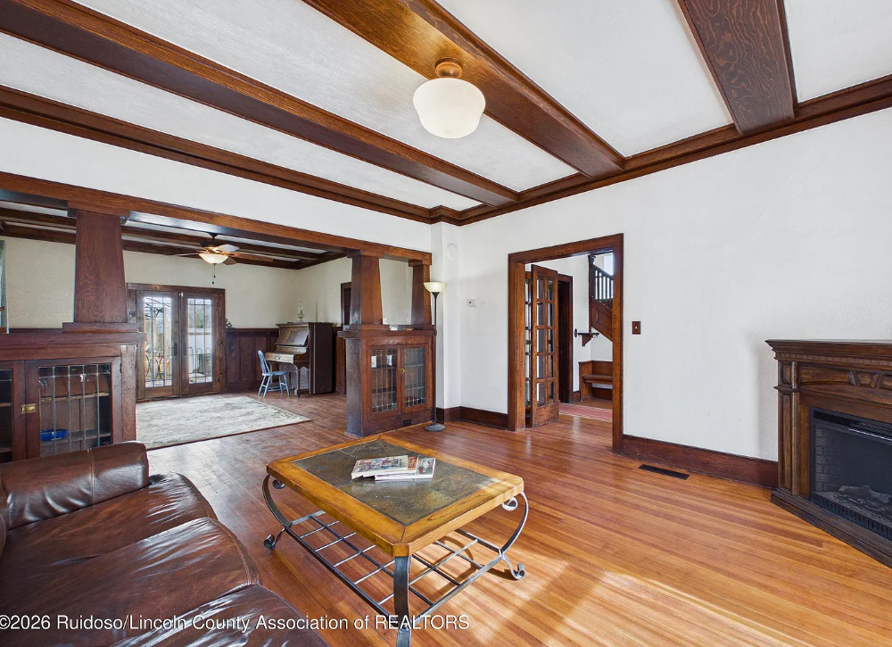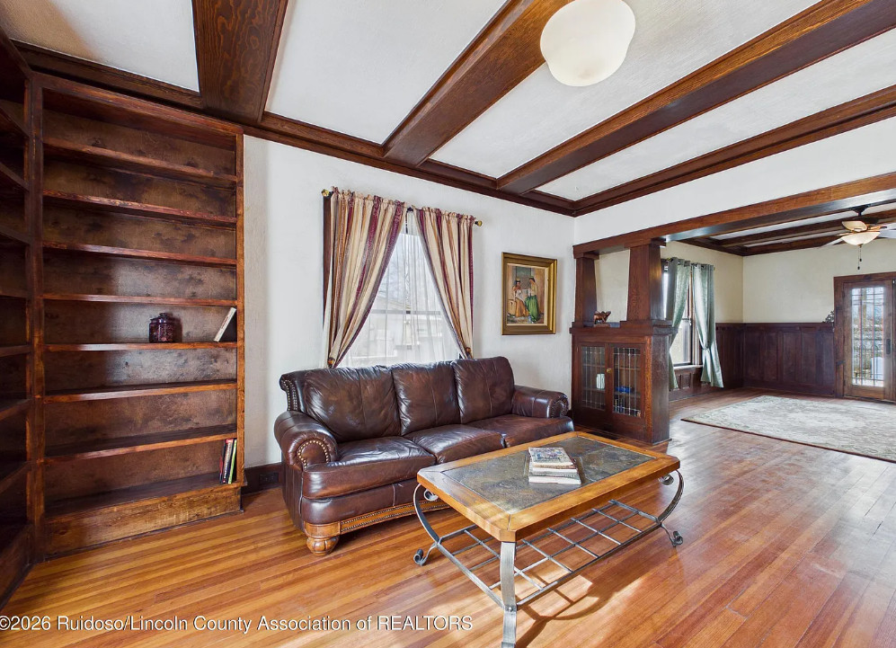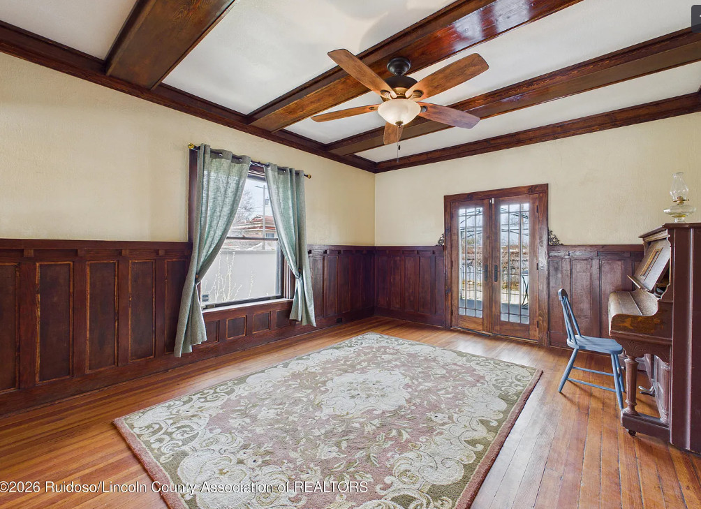 Such pretty woodwork! How about that wine cellar and the walk in humidor. The house was built in 1910. It is located Carrizozo, New Mexico. The house features a covered front porch, hardwood floors, french doors, pretty staircase, built-in seating, exposed beams, built-in bookshelves, paneled wainscoting, bead board, crown moulding and a claw foot tub. There is a basement with a wine cellar and a humidor. The property has a detached garage. Three bedrooms, two bathrooms and 2,268 square feet. $289,000