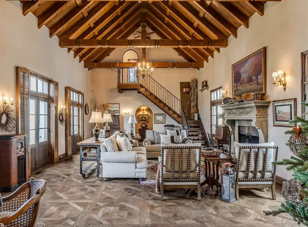 A rare and remarkable opportunity awaits to own one of Bartlesville’s most iconic and architecturally significant estates: The Dahlgren House. Designed by renowned architect Edward Buehler Delk, this Spanish Colonial masterpiece blends historic elegance with refined modern living. Rooted in the character of the 1930s yet thoughtfully updated, the home offers 7 bedrooms — including a fully renovated, expansive primary suite — and 8 full baths plus a half bath, perfectly suited for both comfortable everyday living and elevated entertaining. Dramatic vaulted and beamed ceilings crown the great room, anchored by a magnificent 6-foot stone hearth, while the formal dining room with fireplace creates a warm and sophisticated setting for memorable gatherings. Thoughtfully curated amenities include a working elevator, two stylish wet bars, a Florida room, and six fireplaces throughout the home. Every detail reflects impeccable craftsmanship: intricate wood paneling, rich hardwood floors, and a breathtaking spiral staircase that stands as the home’s architectural centerpiece. A private wine cellar, refined office/library, and recreation lounge with full pool table further enhance the lifestyle experience. A separately keyed basement suite with private entrance, full bath, and kitchenette provides versatility for guests, multigenerational living, or a premium rental arrangement. Outdoors, resort-style luxury unfolds with a 15-foot-deep, tiled saltwater gunite pool, framed by expansive patios, firepit seating areas, and a charming balcony — perfect for year-round enjoyment. A 3-car side-entry garage, additional parking, and extensive storage add convenience to this incomparable estate. To own The Dahlgren House is to become the guardian of a true architectural treasure — a living piece of Bartlesville history, ready to welcome its next extraordinary chapter.