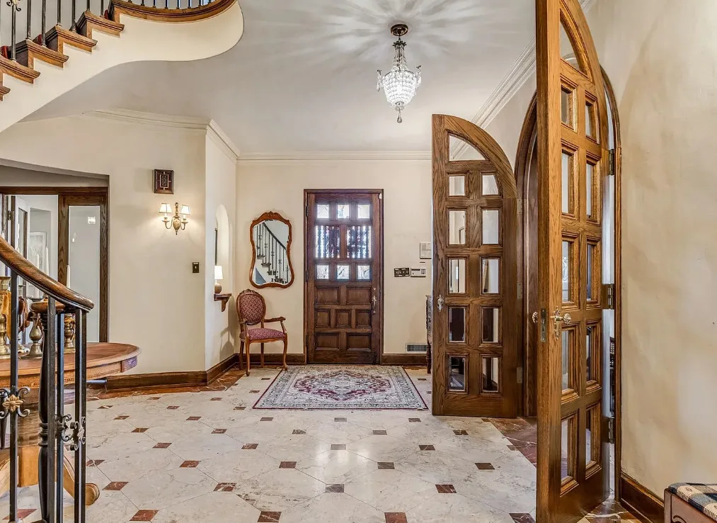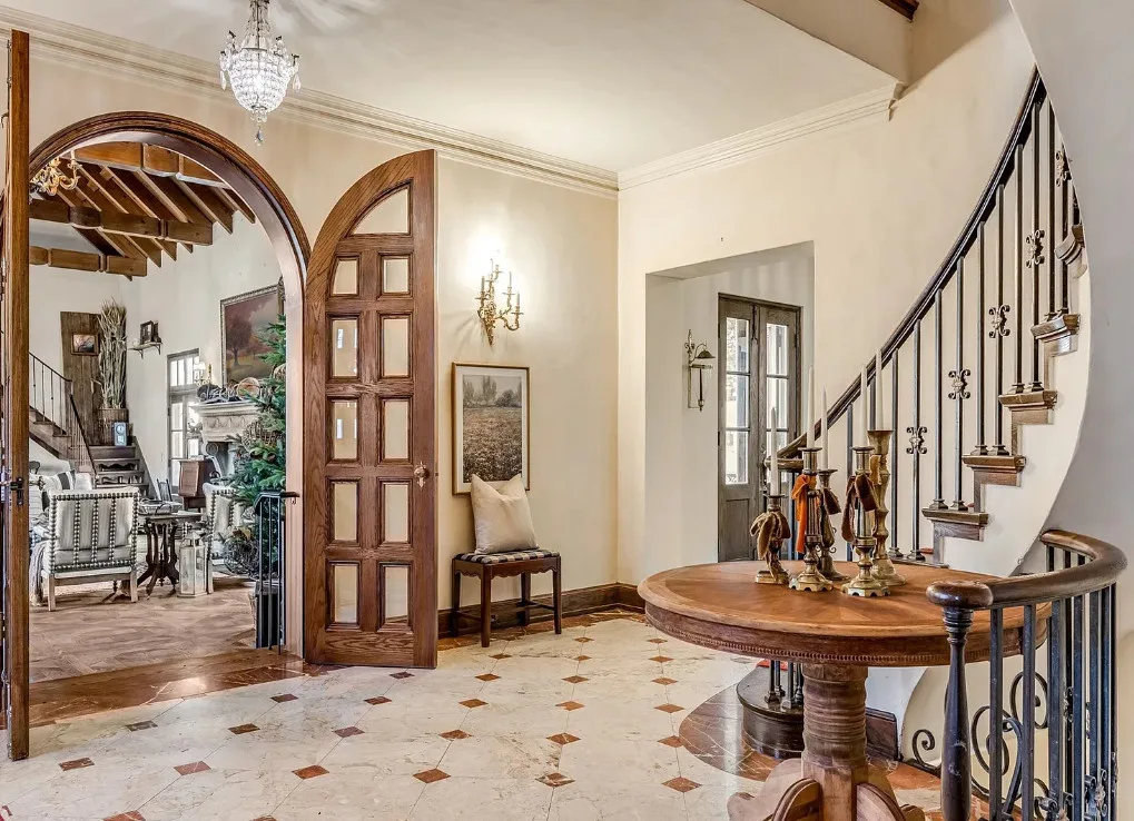 This sure seems like a lot of house for the money! It is over 9,000 square feet! The house was built in 1931. It is known as the Dahlgren House. It was designed by architect, Edward Buehler Deck. This Spanish Colonial House is located on .82 acre in Bartlesville, Oklahoma. The house features an attached three car garage, beautiful tile work around the front door, stunning arched doors in the foyer, grand staircase, vaulted ceiling, wood floors, pretty bathrooms, wine cellar and poker room. There is a pretty in-ground pool and landscaped grounds. Seven bedrooms, nine bathrooms and 9,126 square feet. $875,000