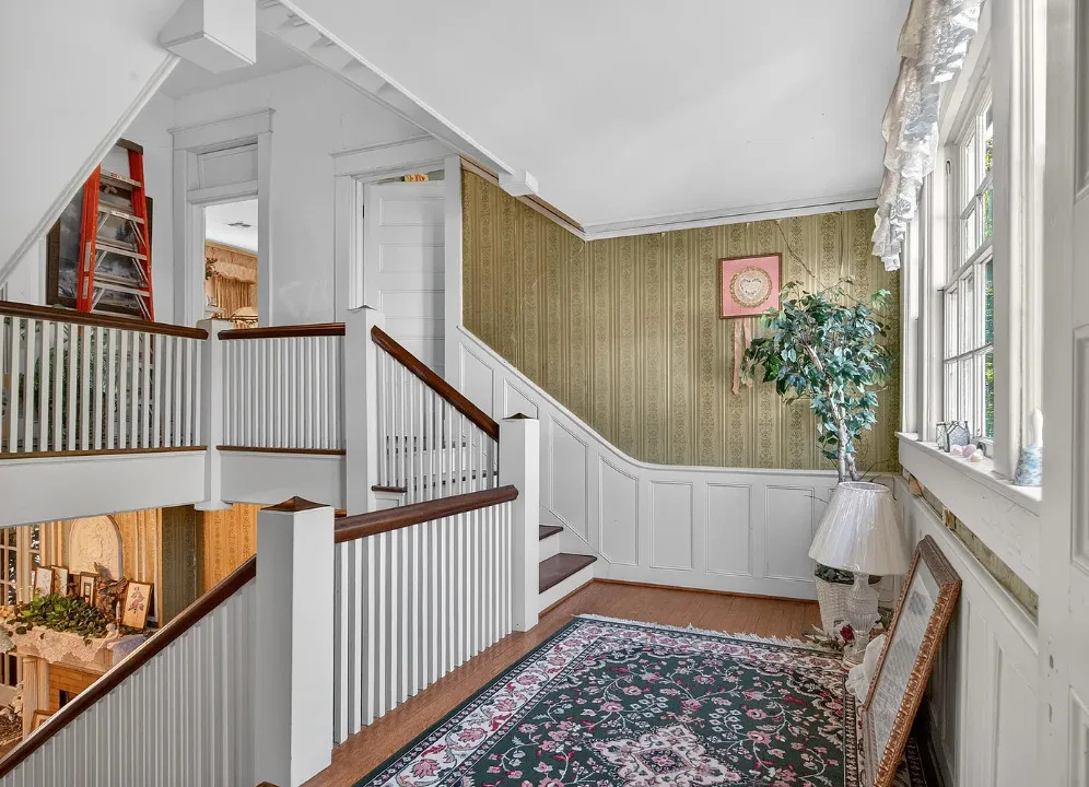This is a grand looking exterior! There are pretty details inside! The house was built in 1895. It is located in Shreveport, Louisiana. The house features a covered front porch, wood floors, grand staircase, crown moulding, pocket doors, wide baseboards, wainscoting, vintage light fixtures, picture rails and an attic for storage. Four bedrooms, three bathrooms and 3,723 square feet. $245,000